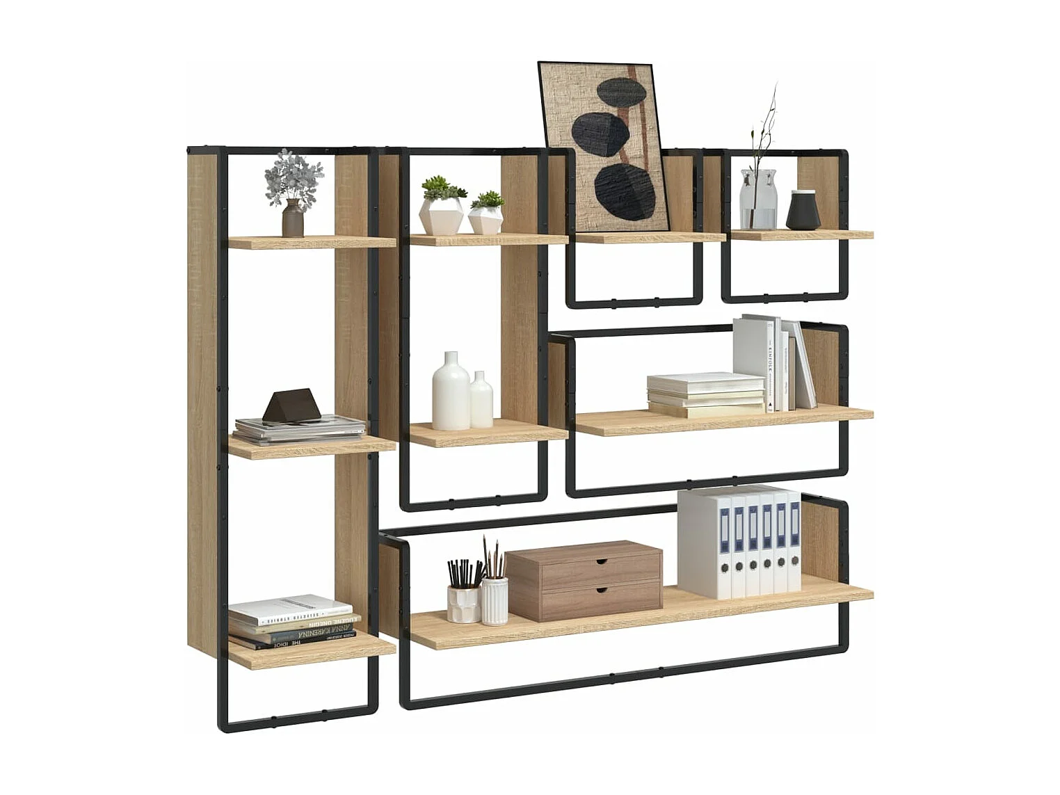 Ensemble d'étagères murales avec barres 6 pcs chêne sonoma
