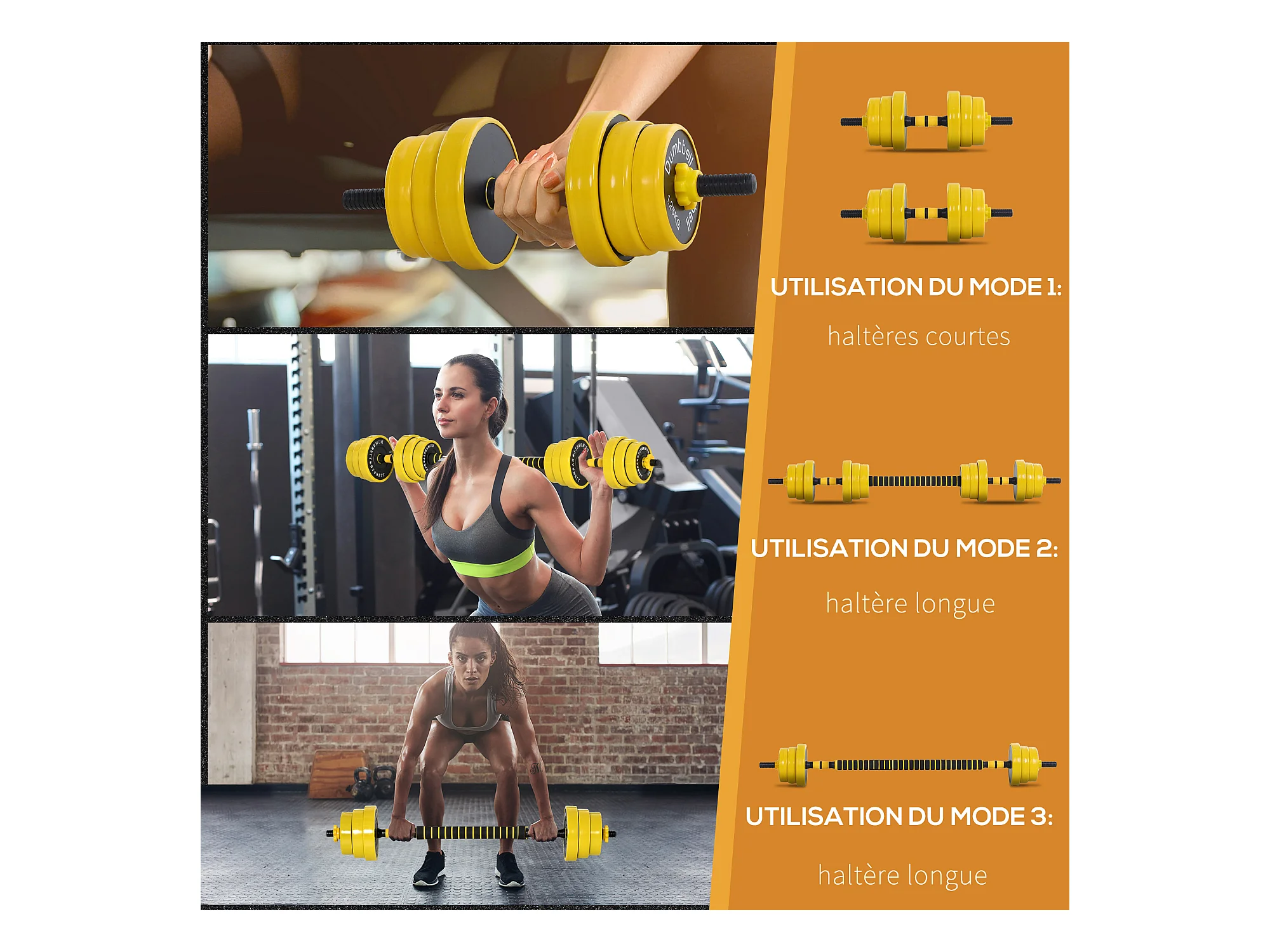 Ensemble haltères et barre 20 Kg - musculation réglable - entraînement musculaire & haltérophilie