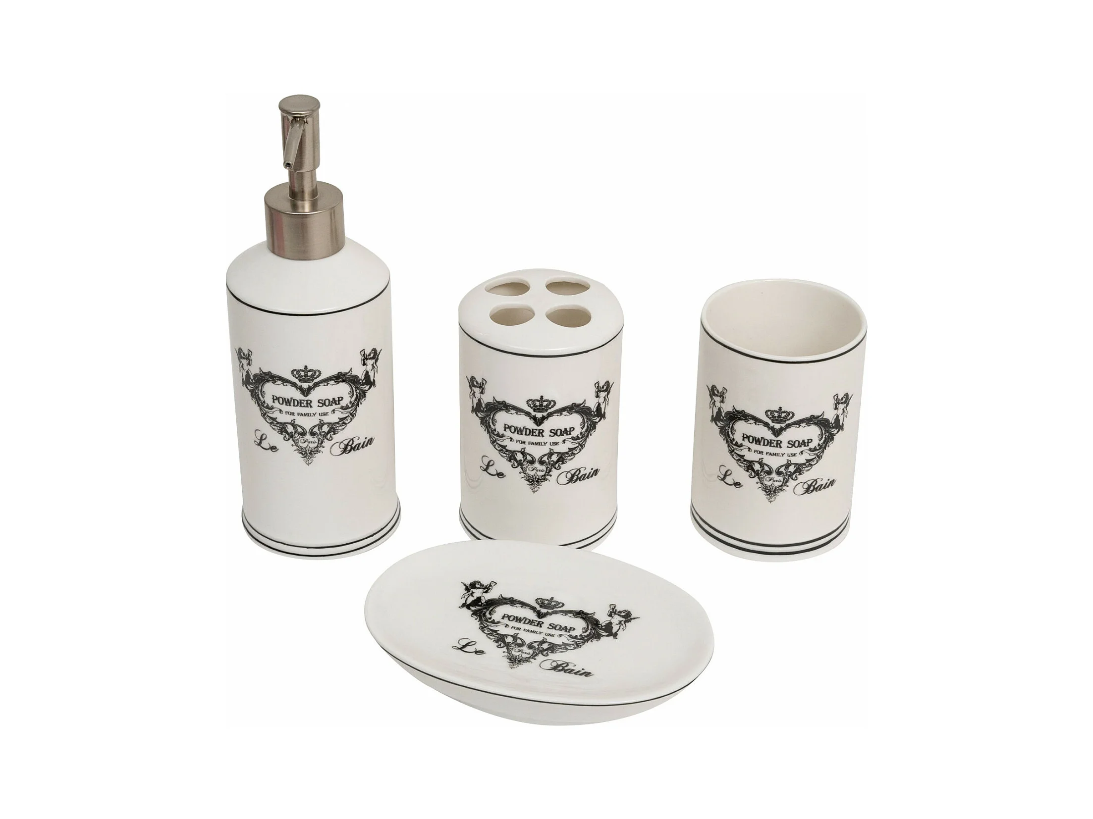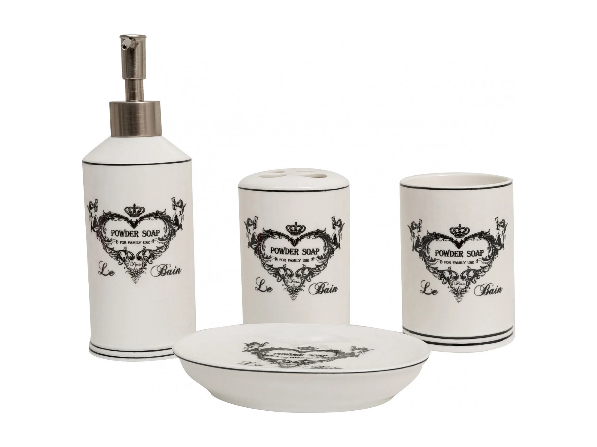 Ensemble lavabo "Powder Soap" 4 pcs | Accessoires de salle de bain, porte-savon liquide et porte-brosse à dents, plateau de rangement et verre de salle de bain