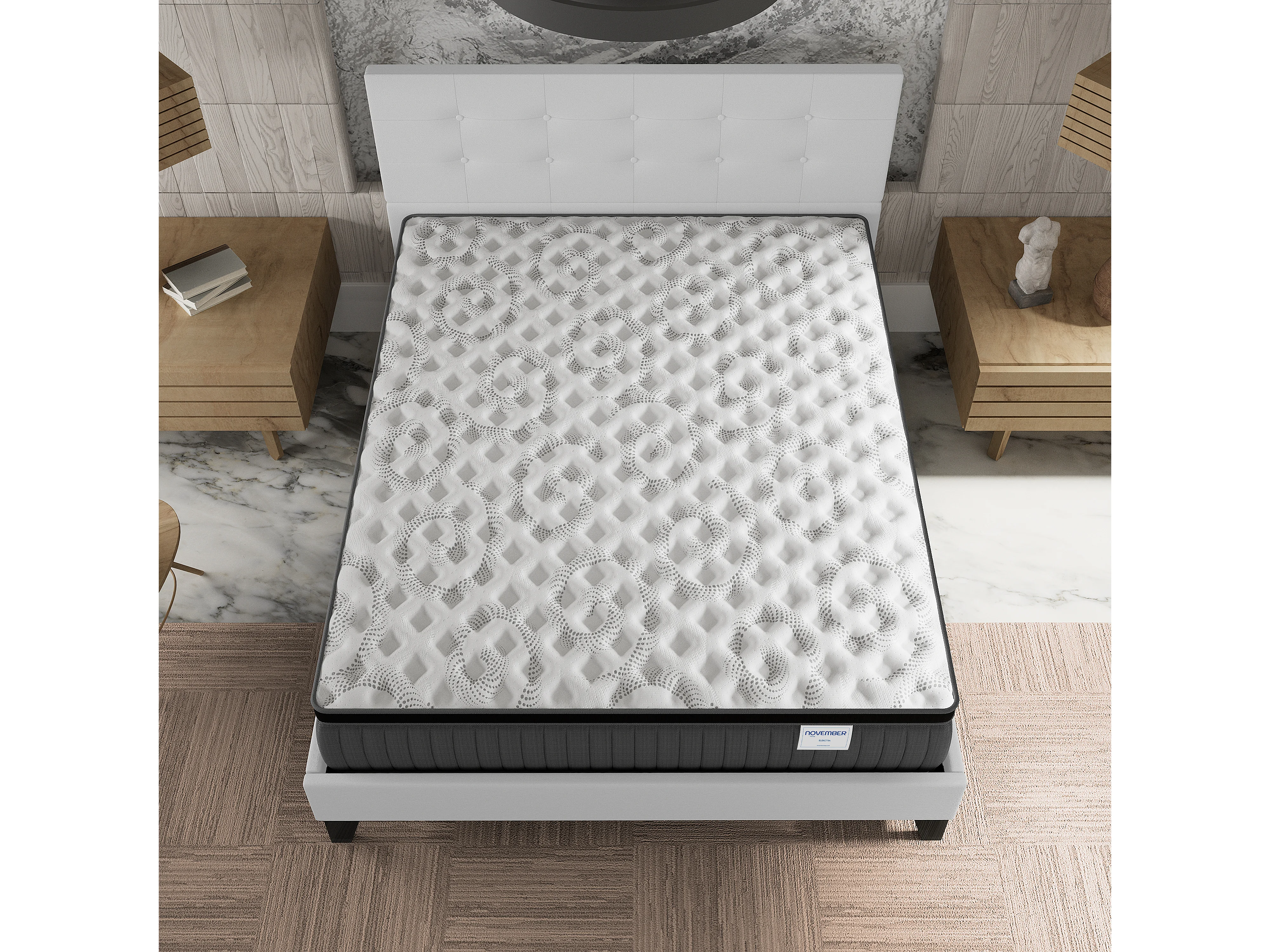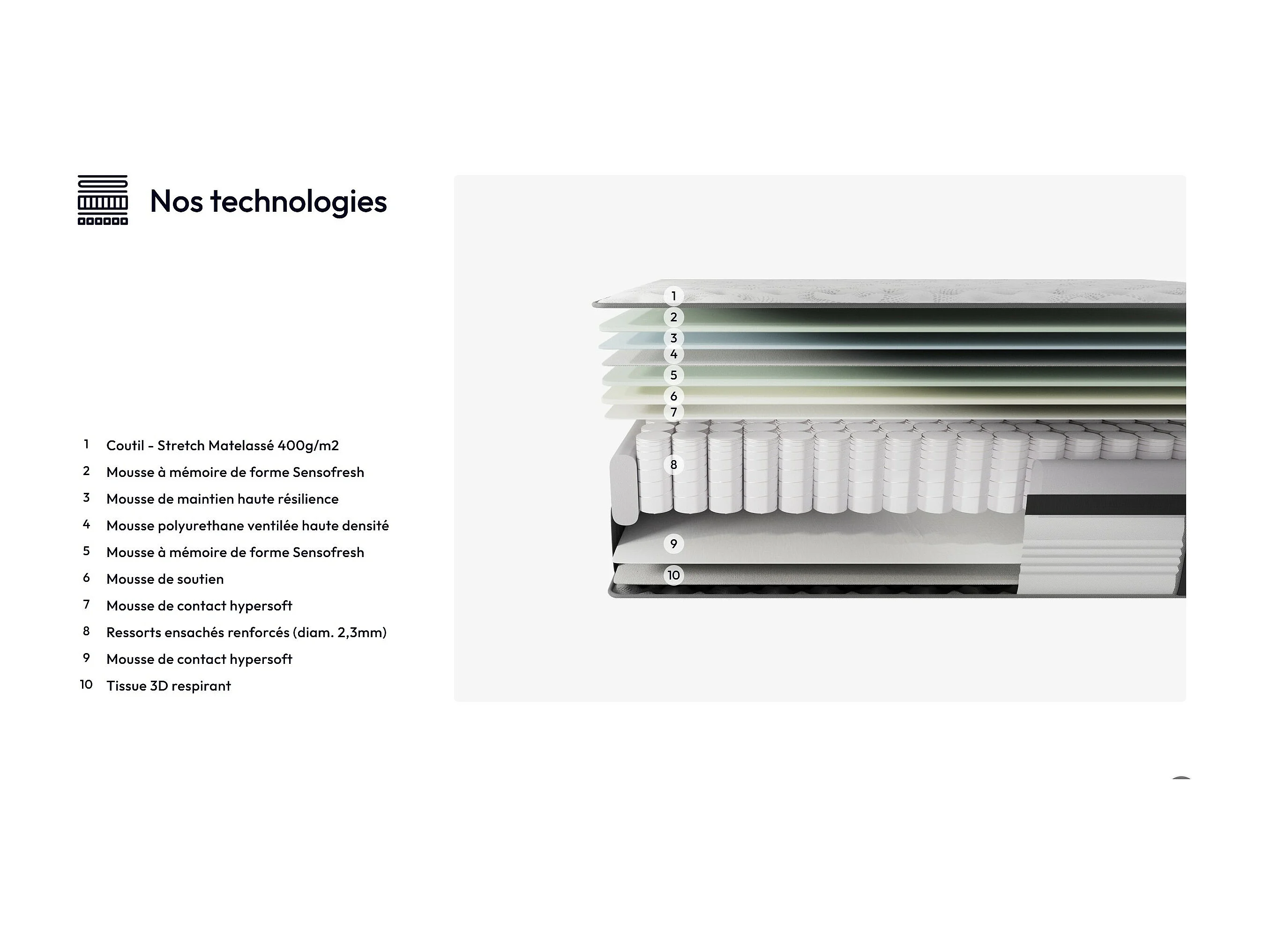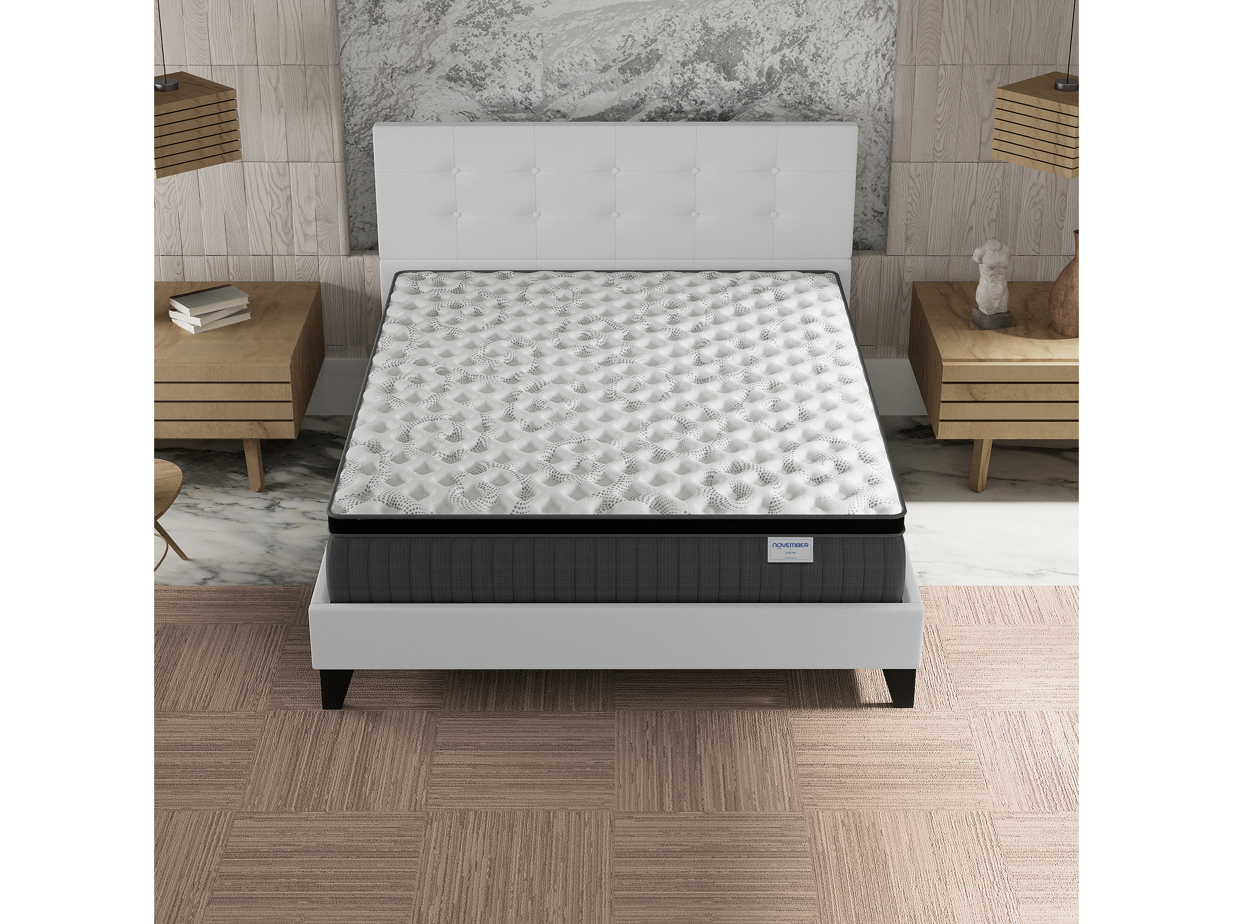 Ensemble matelas + lit 140x190 cm, matelas 30cm ressorts ensachés + mémoire de forme, lit à tête de lit capitonnée similicuir blanc