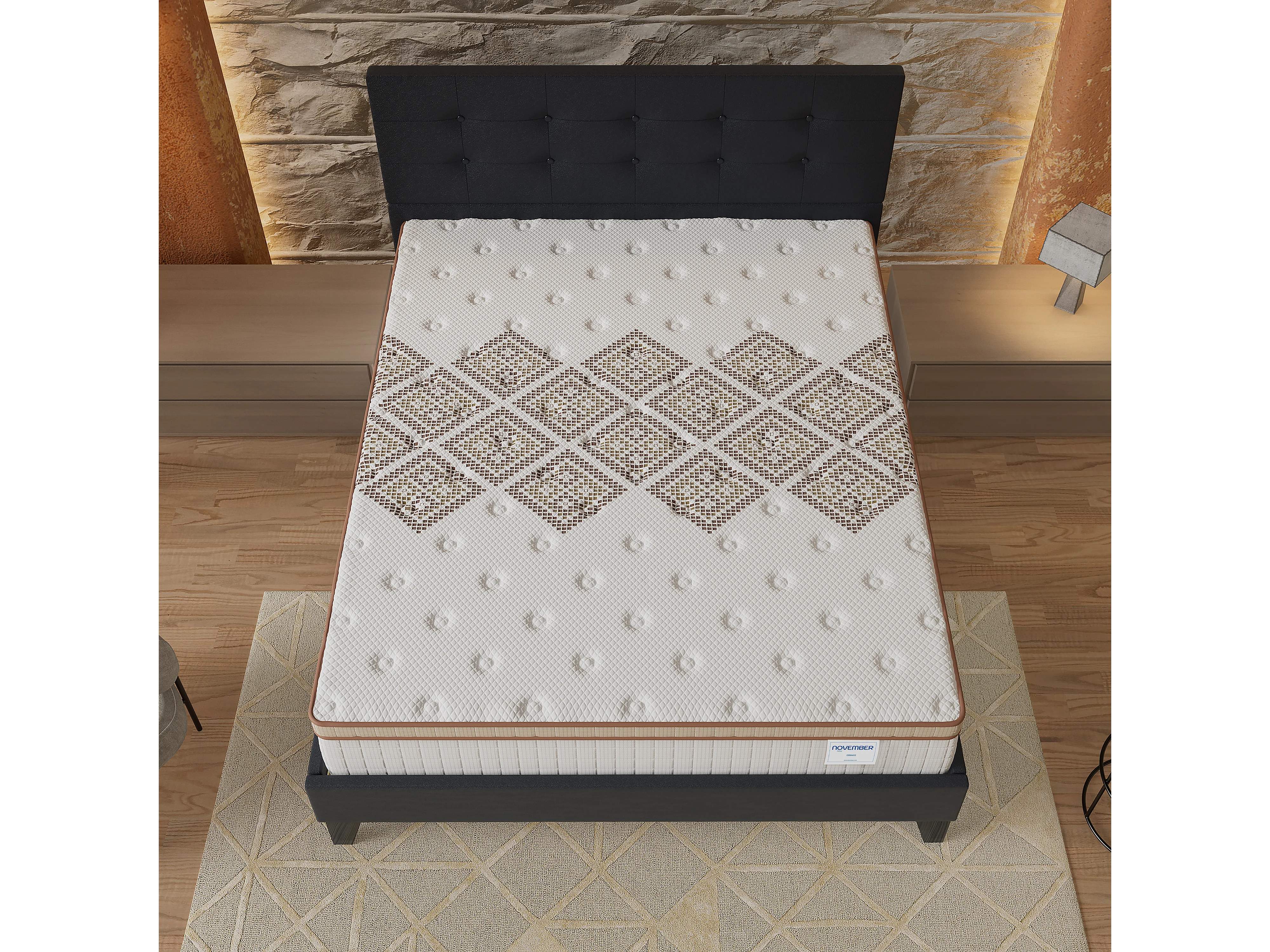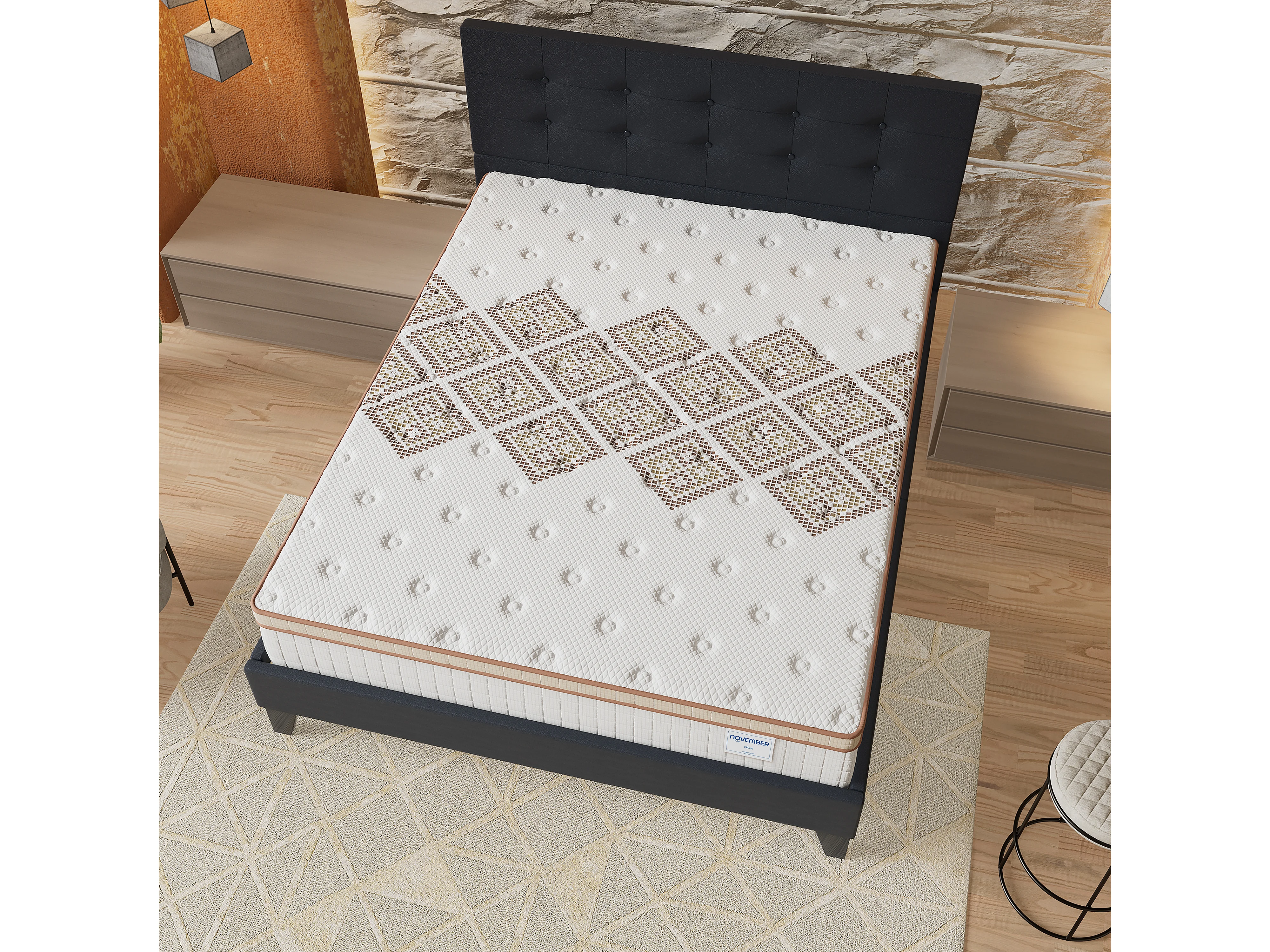 Ensemble Matelas + lit 140x190 cm, Matelas 28cm ressorts ensachés, accueil mousse, lit à tête de lit capitonnée similicuir noir