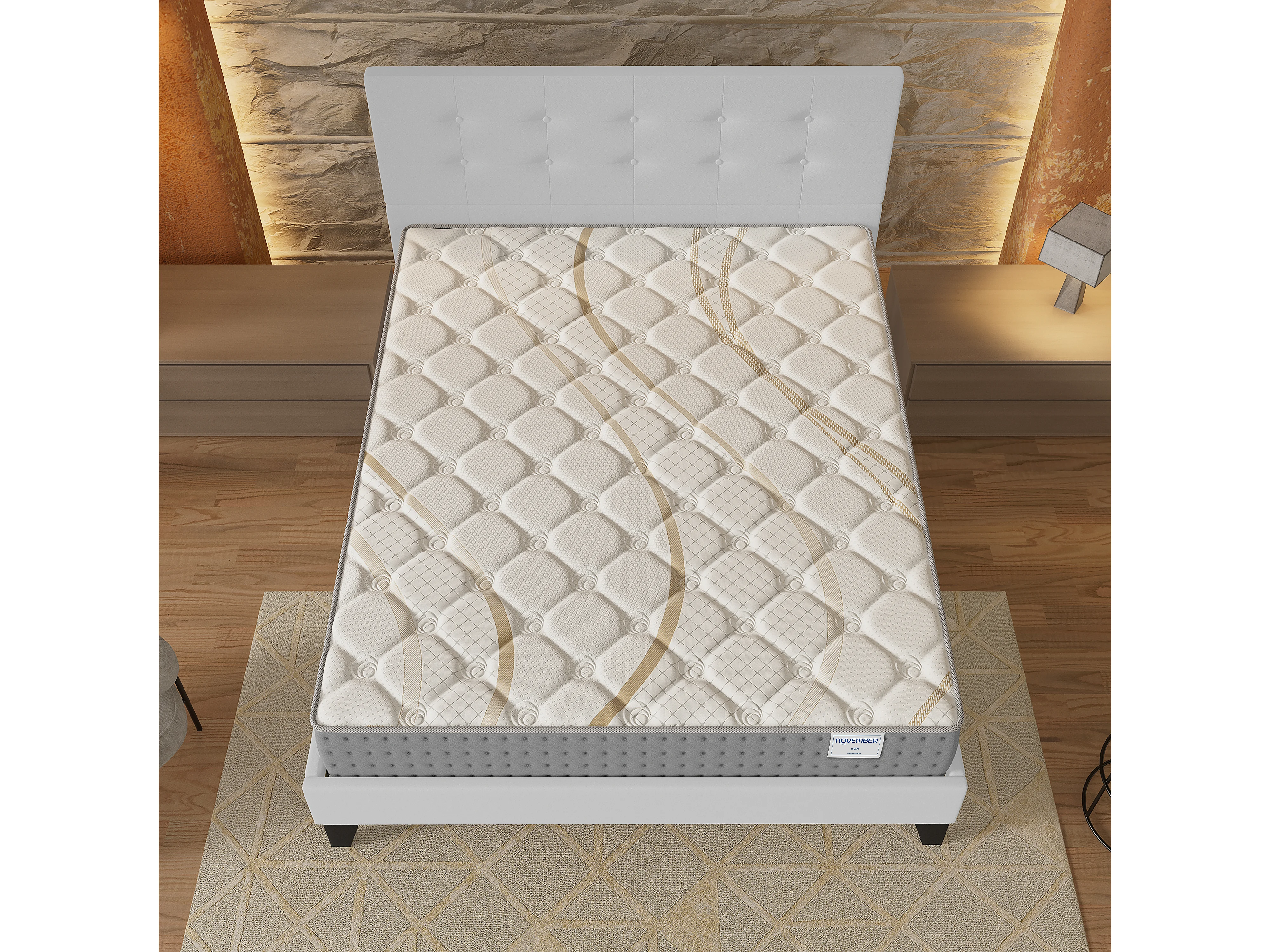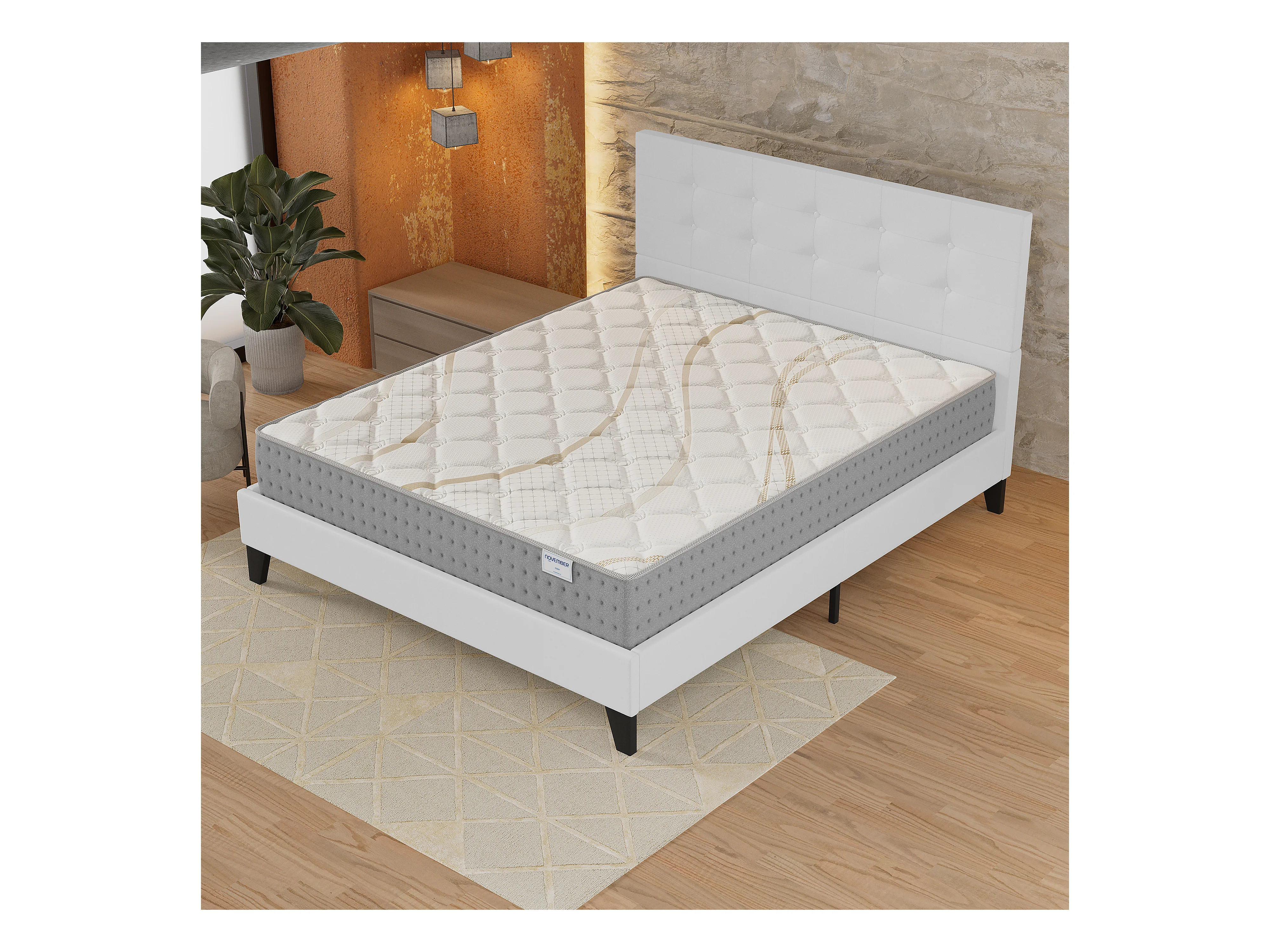 Ensemble 140x200 cm, lit avec tête de lit + matelas ressorts ensachés, ép.25cm accueil mousse HR