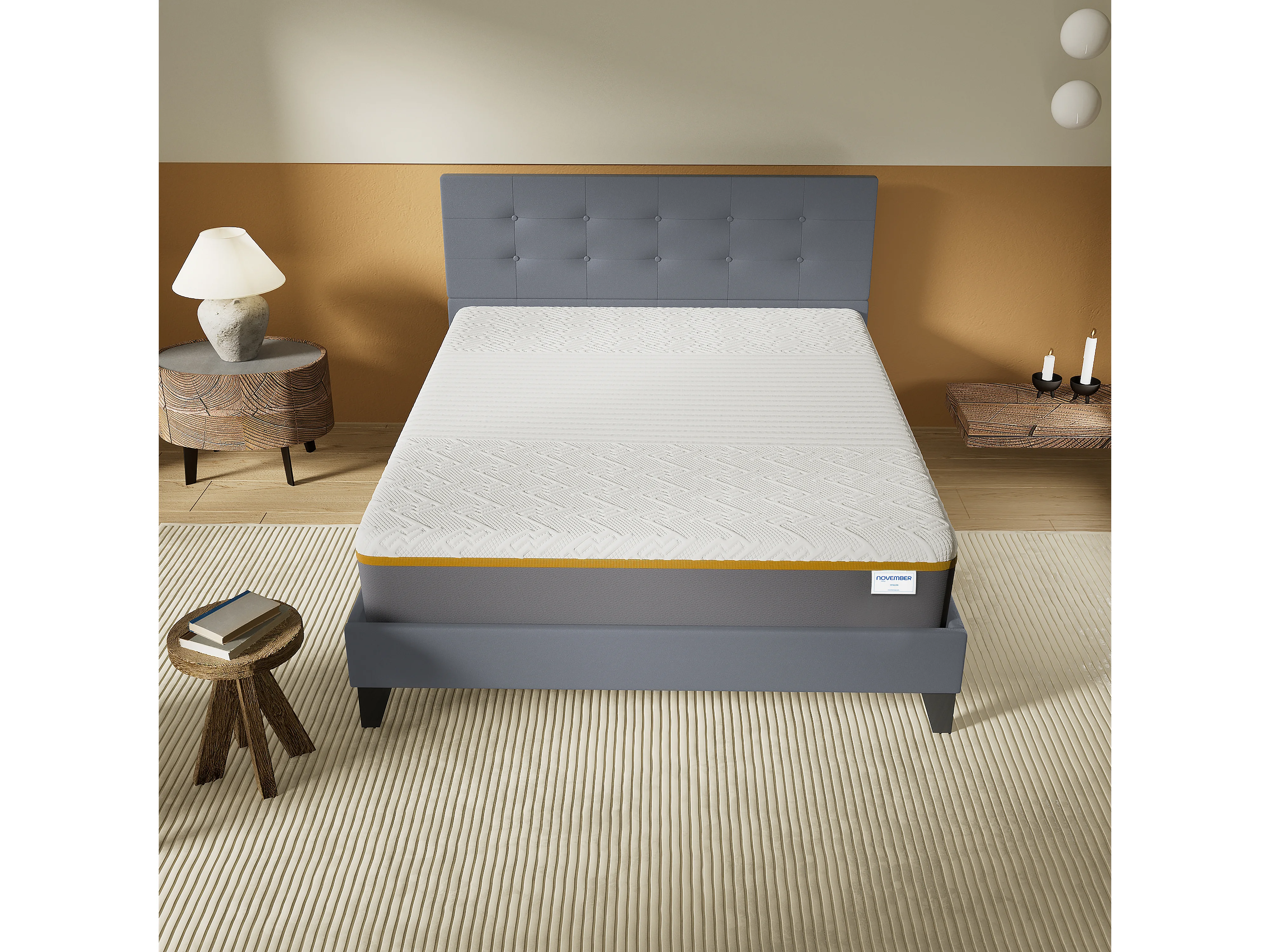 Ensemble 140x200 cm, lit avec tête de lit + Matelas mousse latex ép.28cm accueil à mémoire de forme