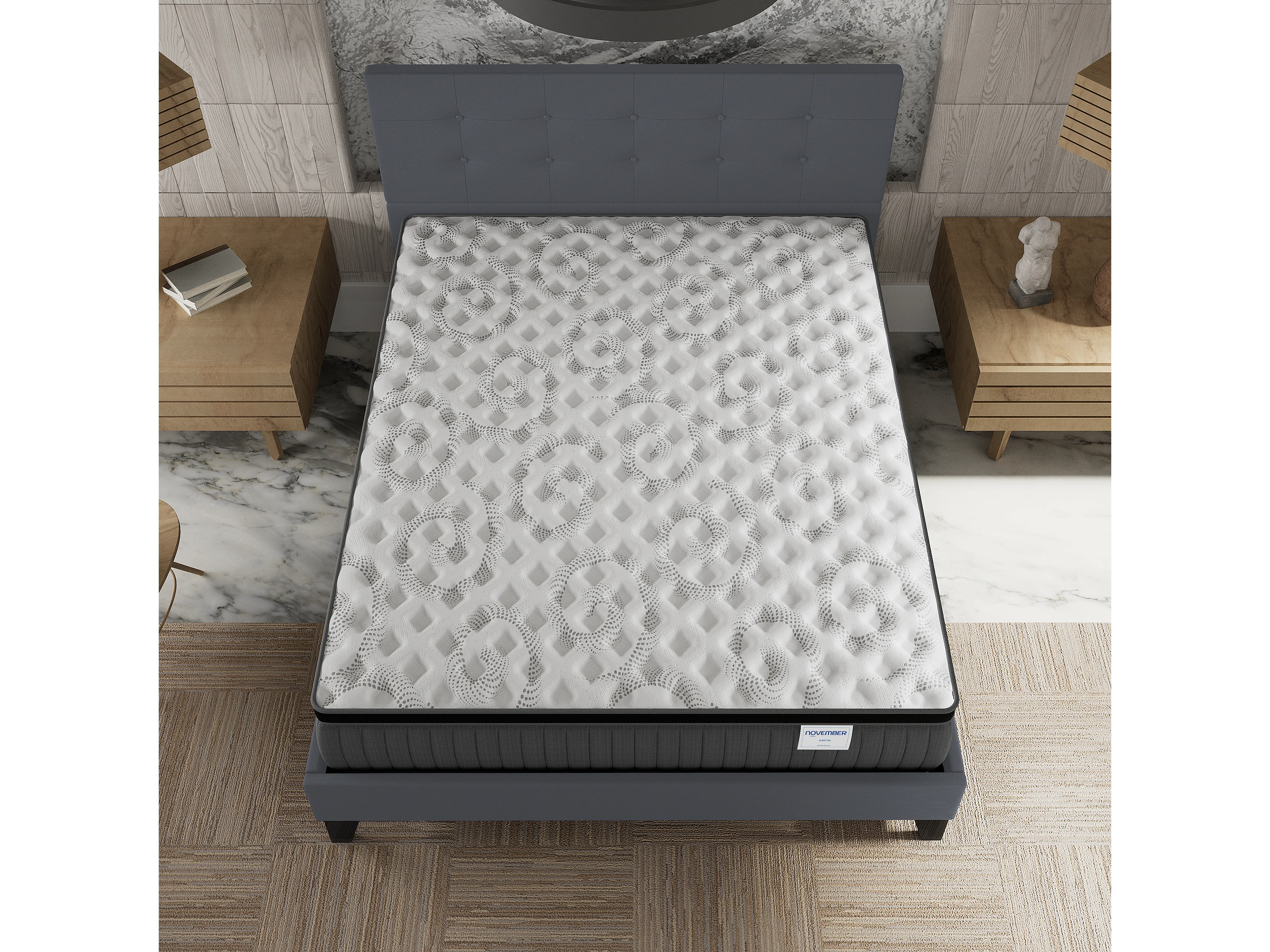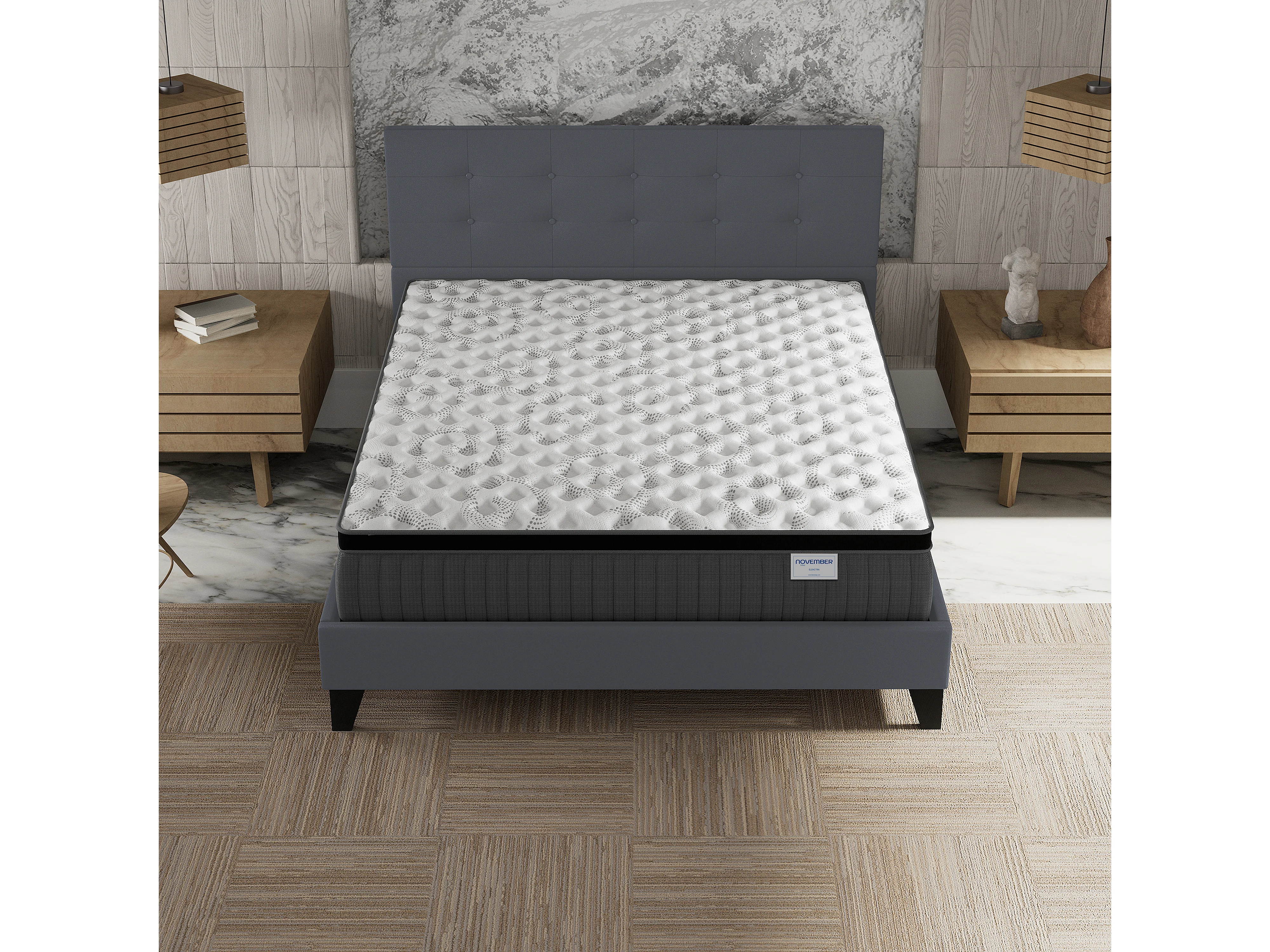 Ensemble matelas + lit 160x200 cm, matelas 30cm ressorts ensachés + mémoire de forme, lit à tête de lit capitonnée similicuir gris