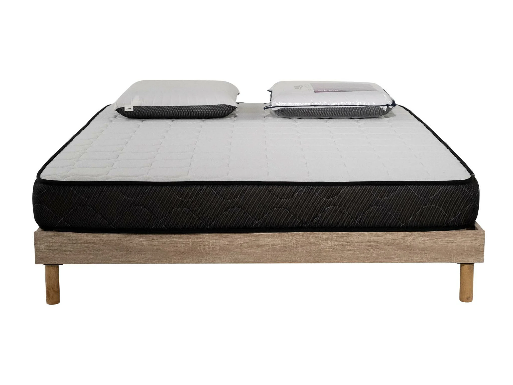 Ensemble matelas mousse acceuil mémoire Memory - 160x200 - 2 Oreillers visco et Sommier kit chêne