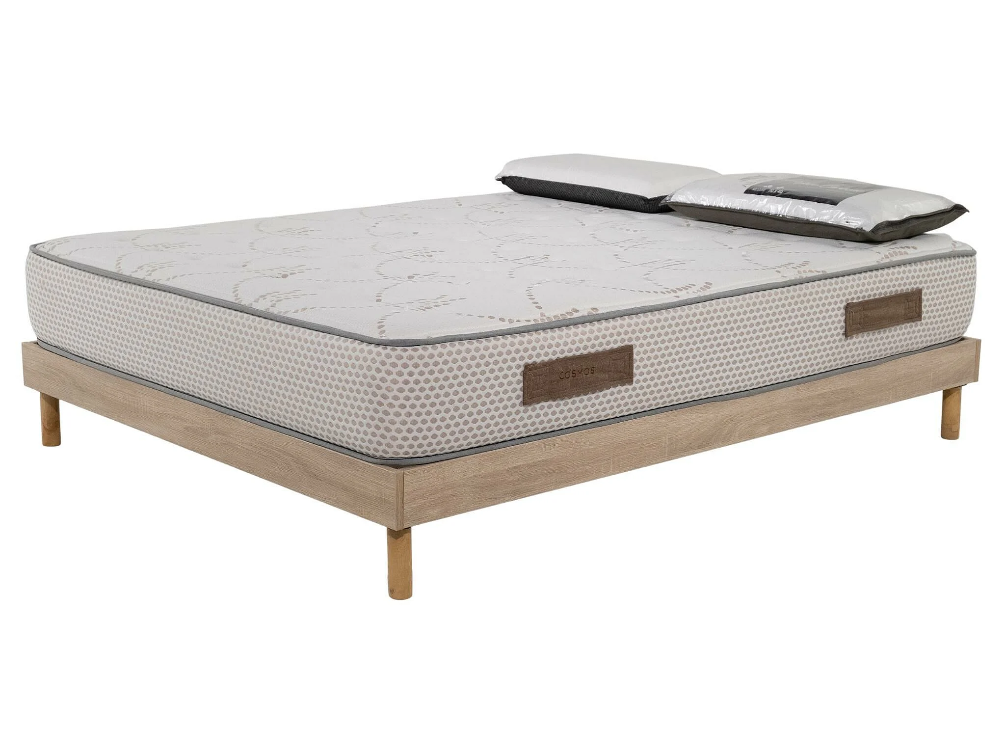 Ensemble Matelas mousse Cosmos White accueil mémoire-140x190-2 oreillers 70x40-Sommier kit chêne