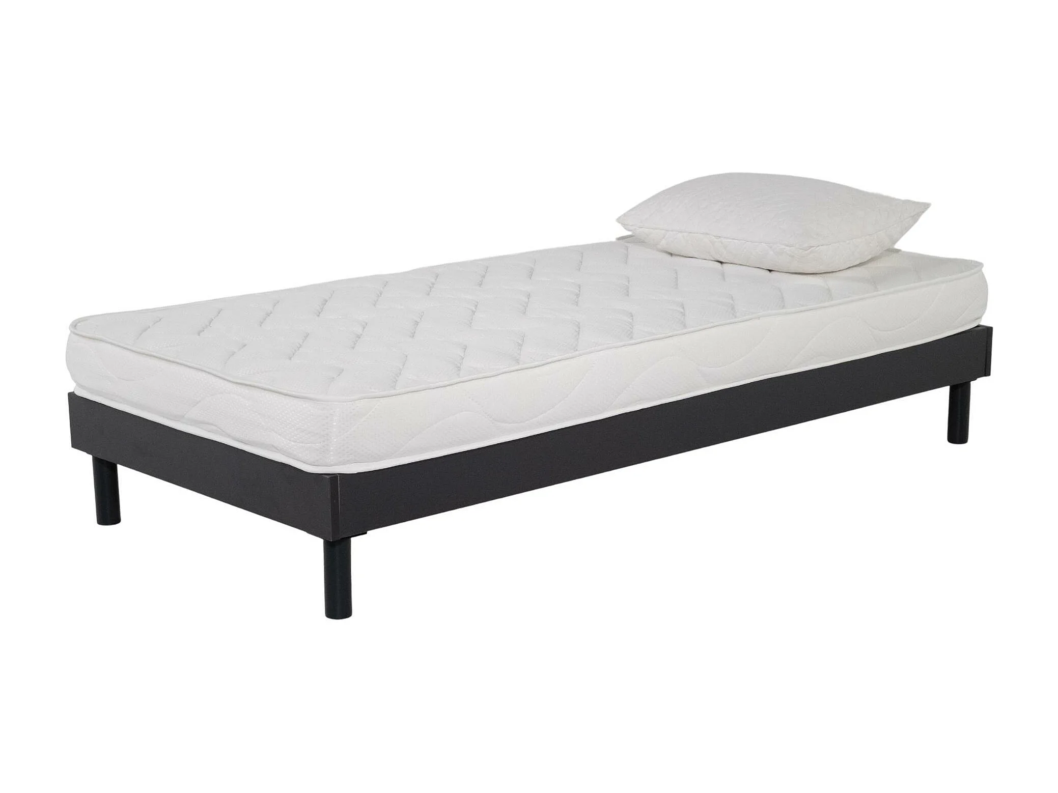 Ensemble Matelas mousse ECO - 90x190 et 1 Oreiller flocons mémoire 50x70 - Sommier kit Gris
