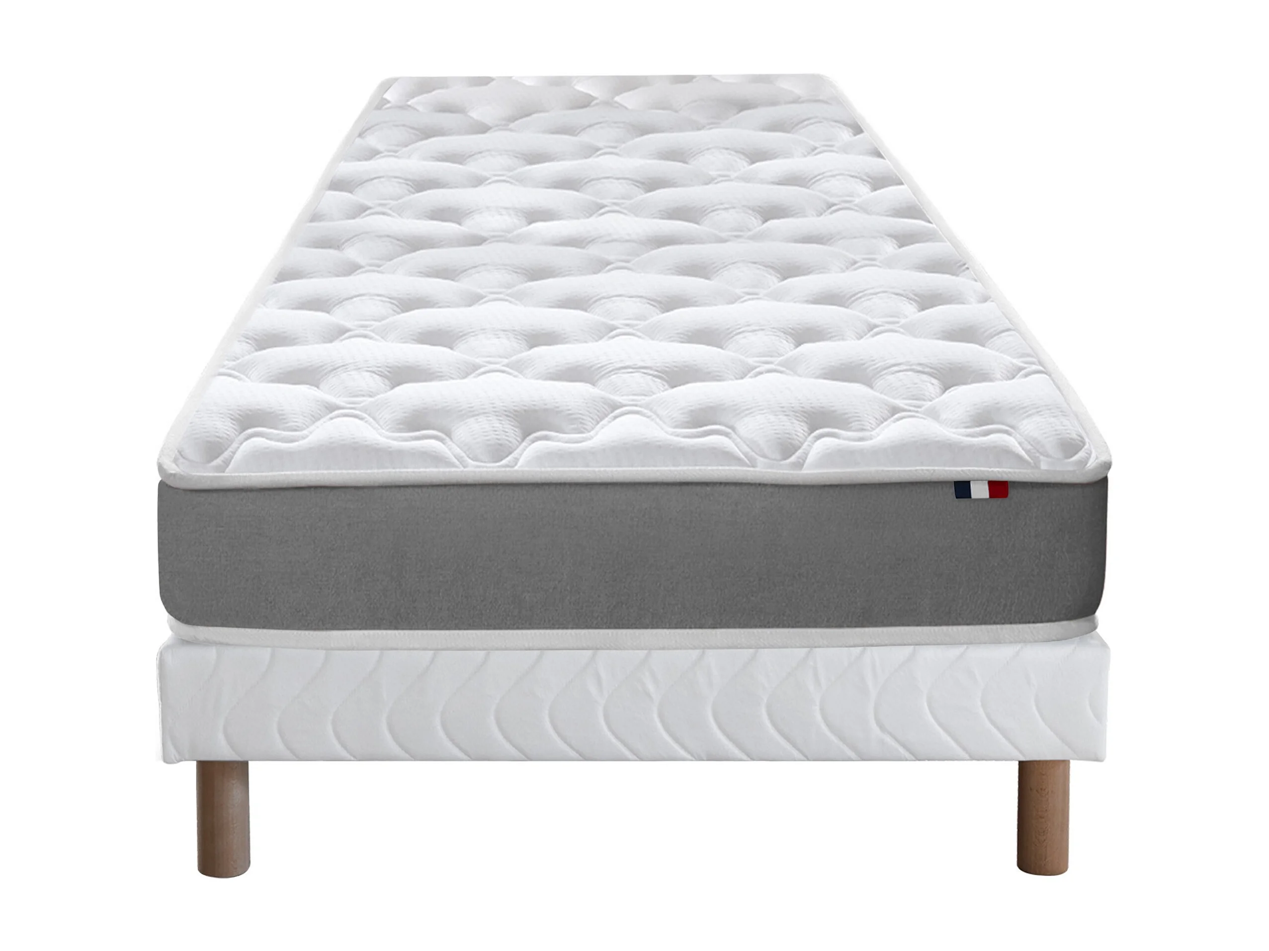 Ensemble matelas mousse ferme réversible ALTO et sommier - confort français Dimensions - 90 x 190 cm, Sommier - Blanc