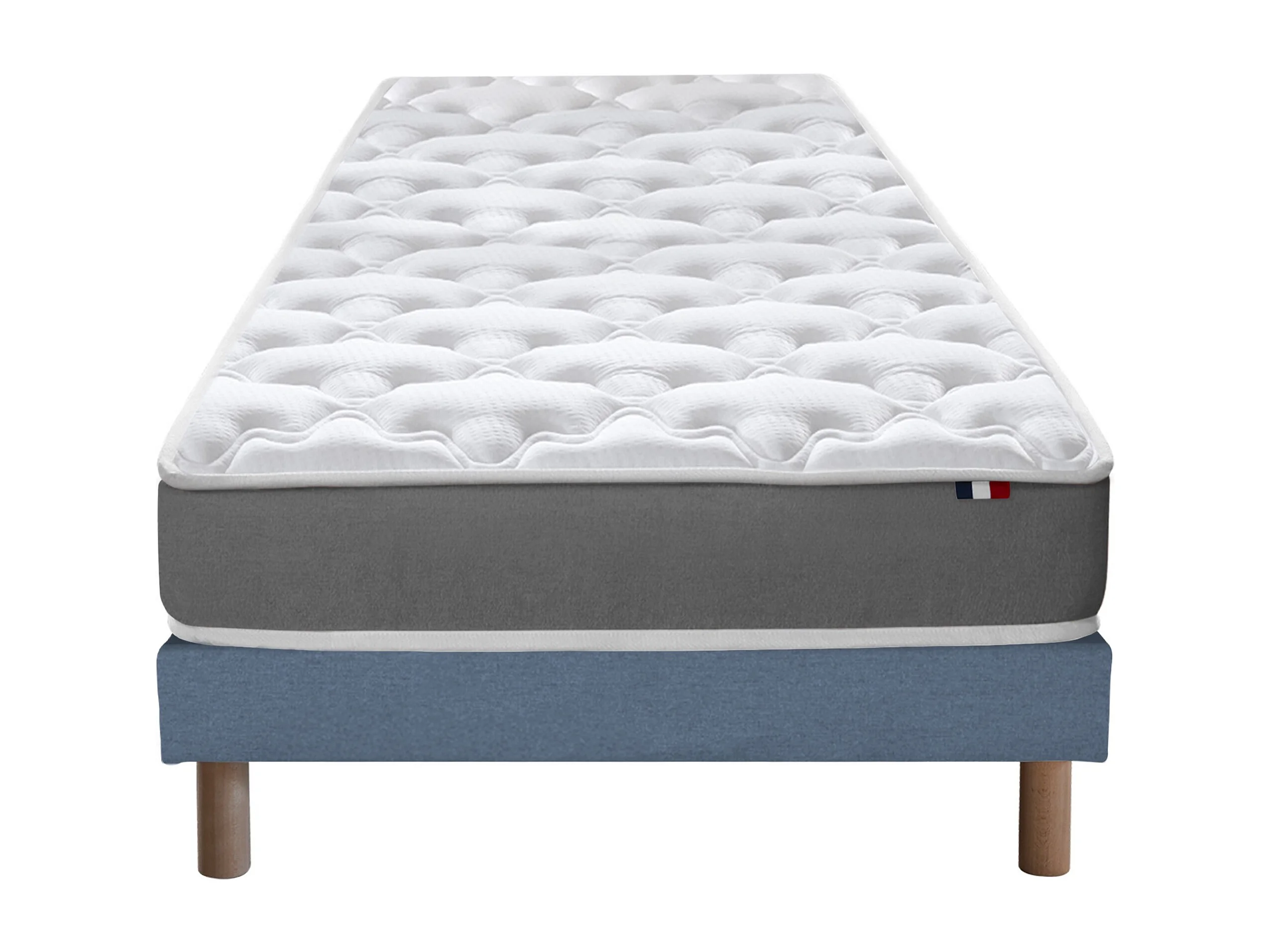 Ensemble matelas mousse ferme réversible ALTO et sommier - confort français Dimensions - 90 x 190 cm, Sommier - Bleu denim