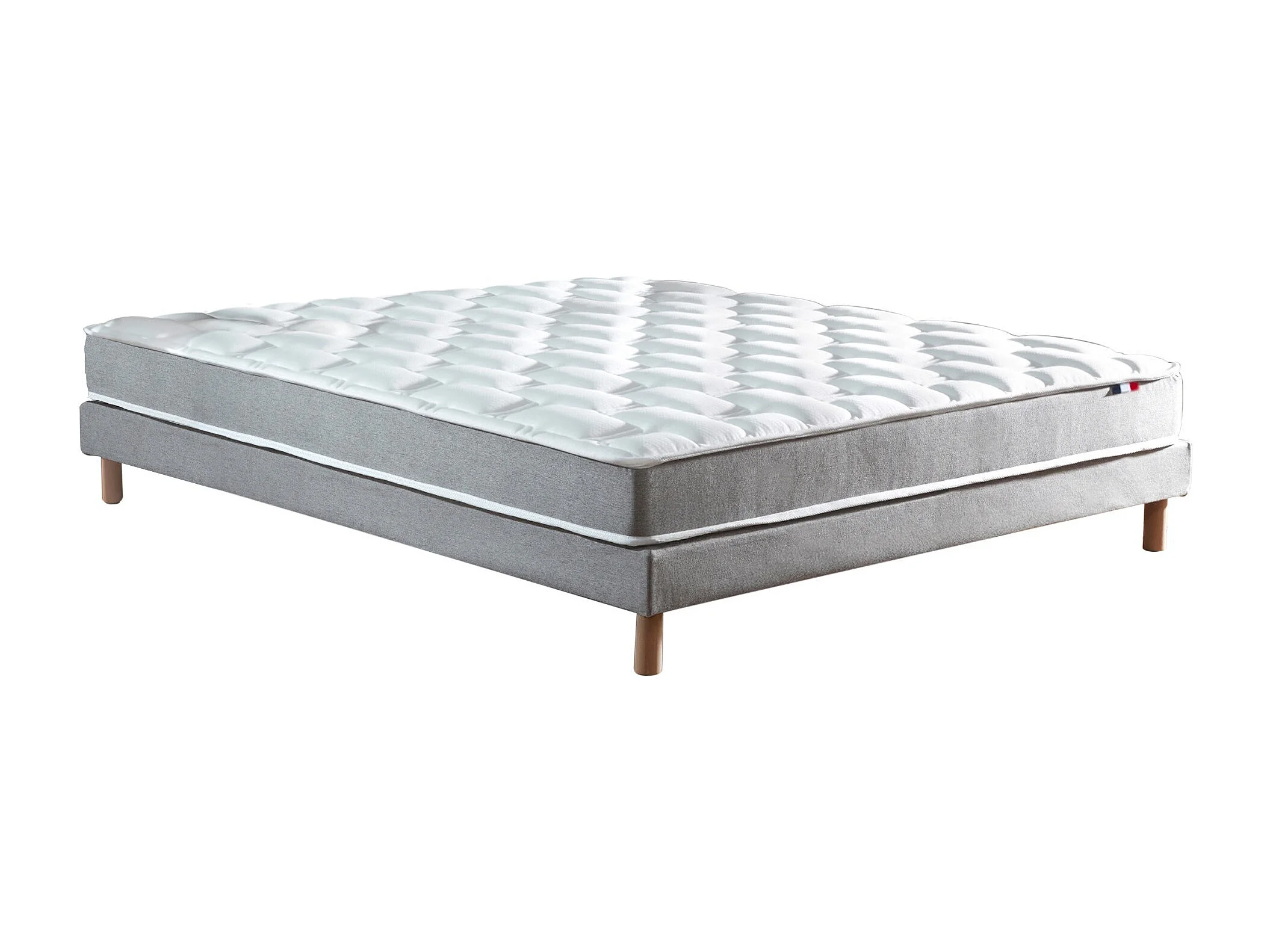 Ensemble matelas mousse haute résilience CIRRUS avec sommier - confort français Dimensions - 140 x 190 cm, Sommier - Gris chiné