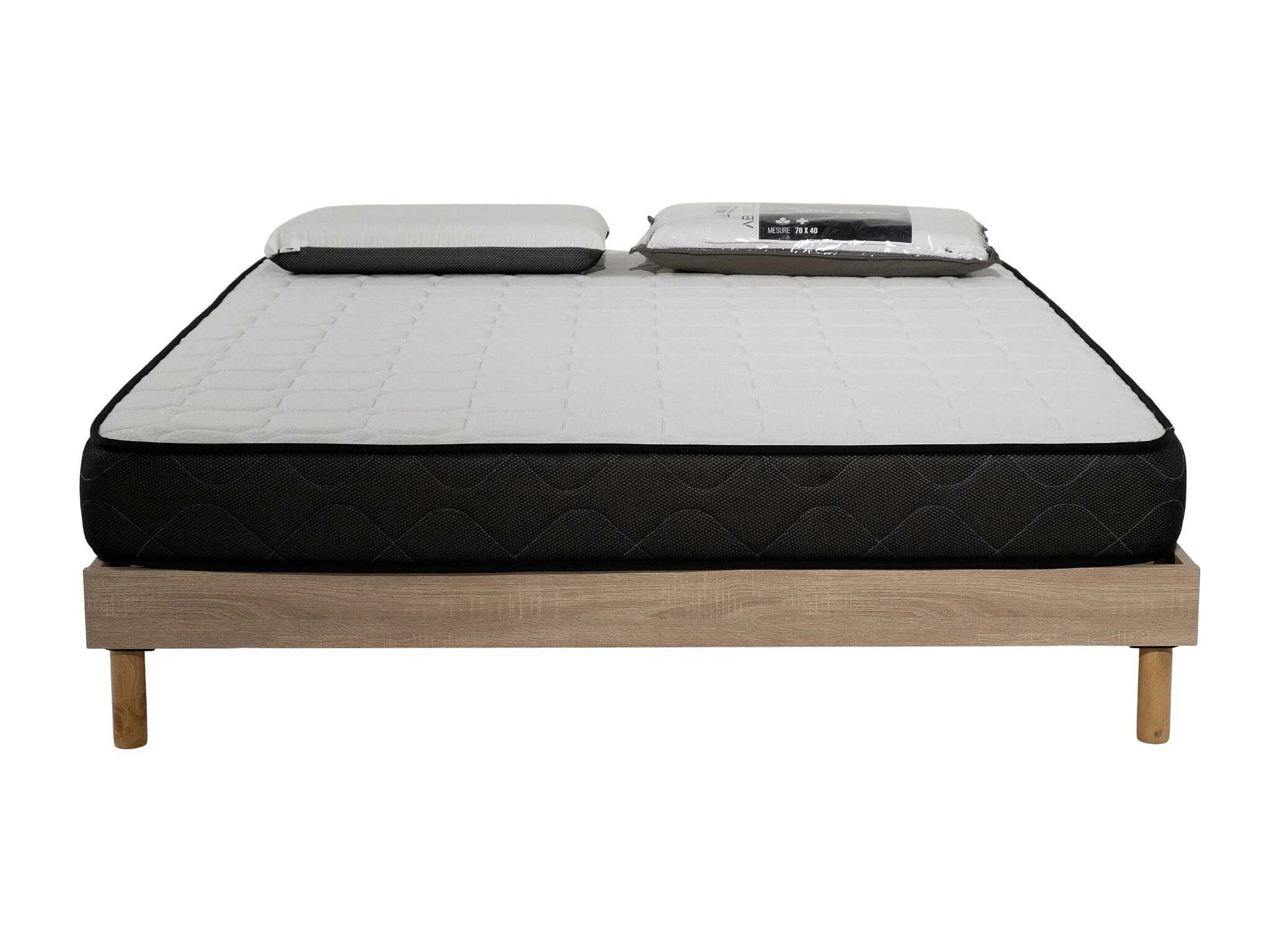 Ensemble Matelas mousse Memory - 140x190cm et 2 Oreillers 70x40 - Sommier kit couleur chêne