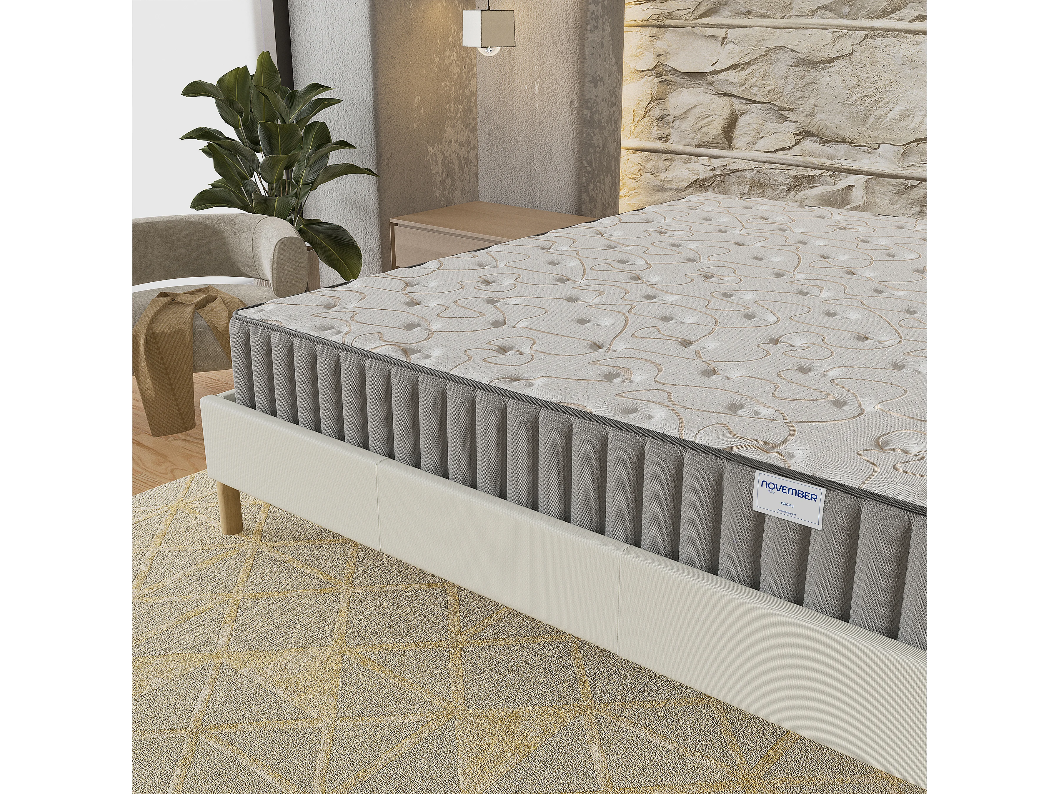 Ensemble matelas mémoire de forme + sommier 160x200cm, Matelas 22cm d’épaisseur et sommier tissu blanc