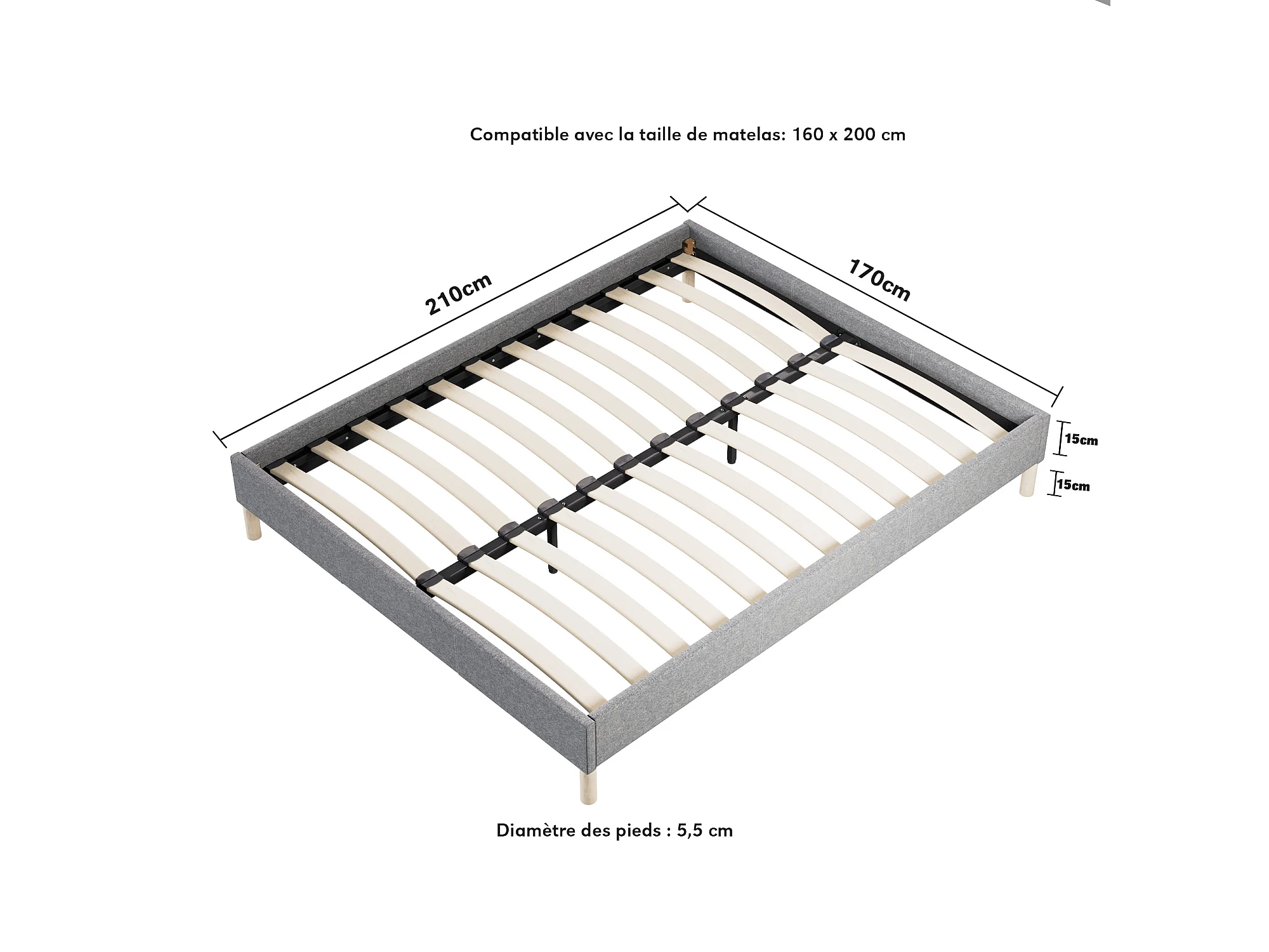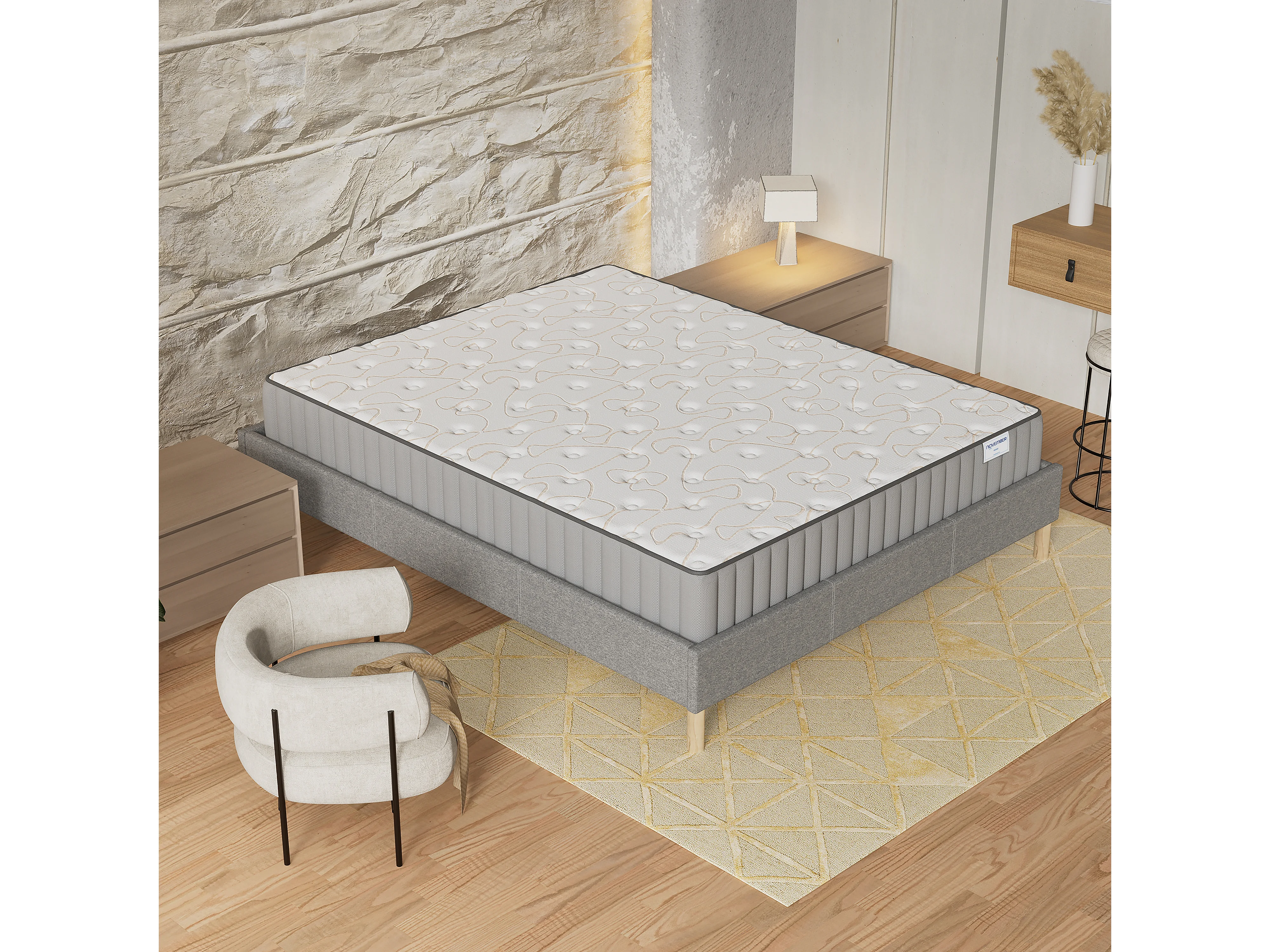 Ensemble matelas mémoire de forme + sommier 160x200cm, Matelas 22cm d’épaisseur et sommier tissu gris
