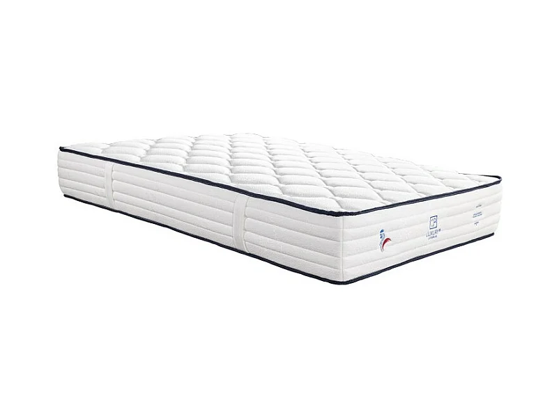 Ensemble Matelas Patriote, 27 cm, ressorts ensachés, ferme, face été/hiver + sommier gris ep20cm, 90x190cm