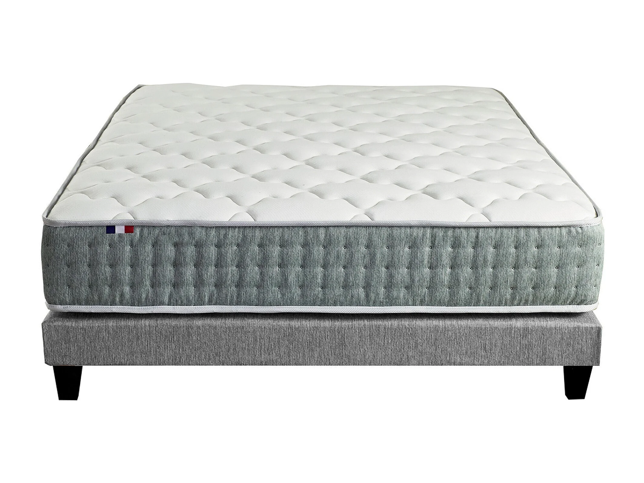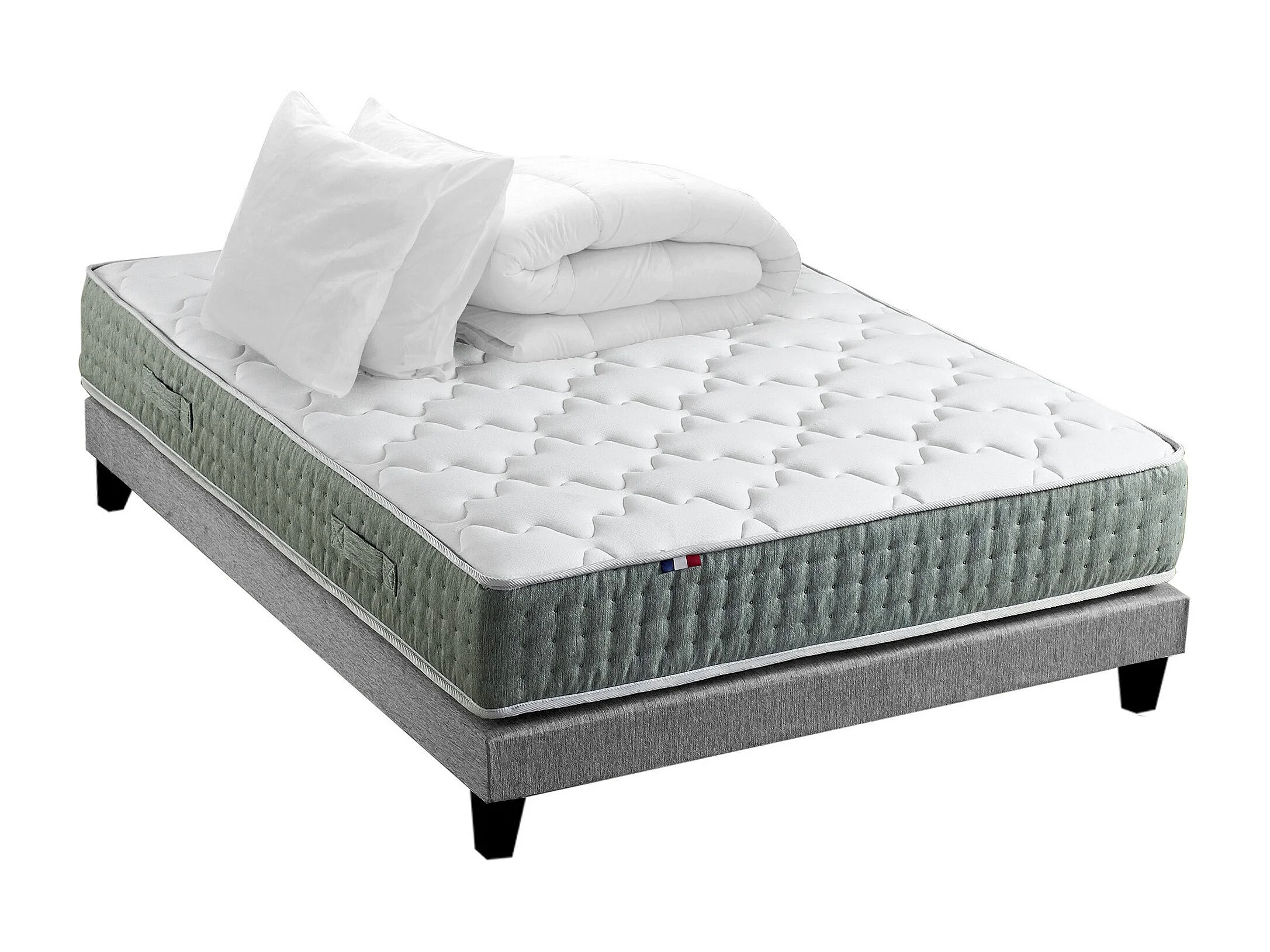 Ensemble matelas Ressort 7 zones HYGGE + Sommier + couette + oreillers Fabriqué en France Dimensions - 140 x 190 cm, Sommier - Gris chiné