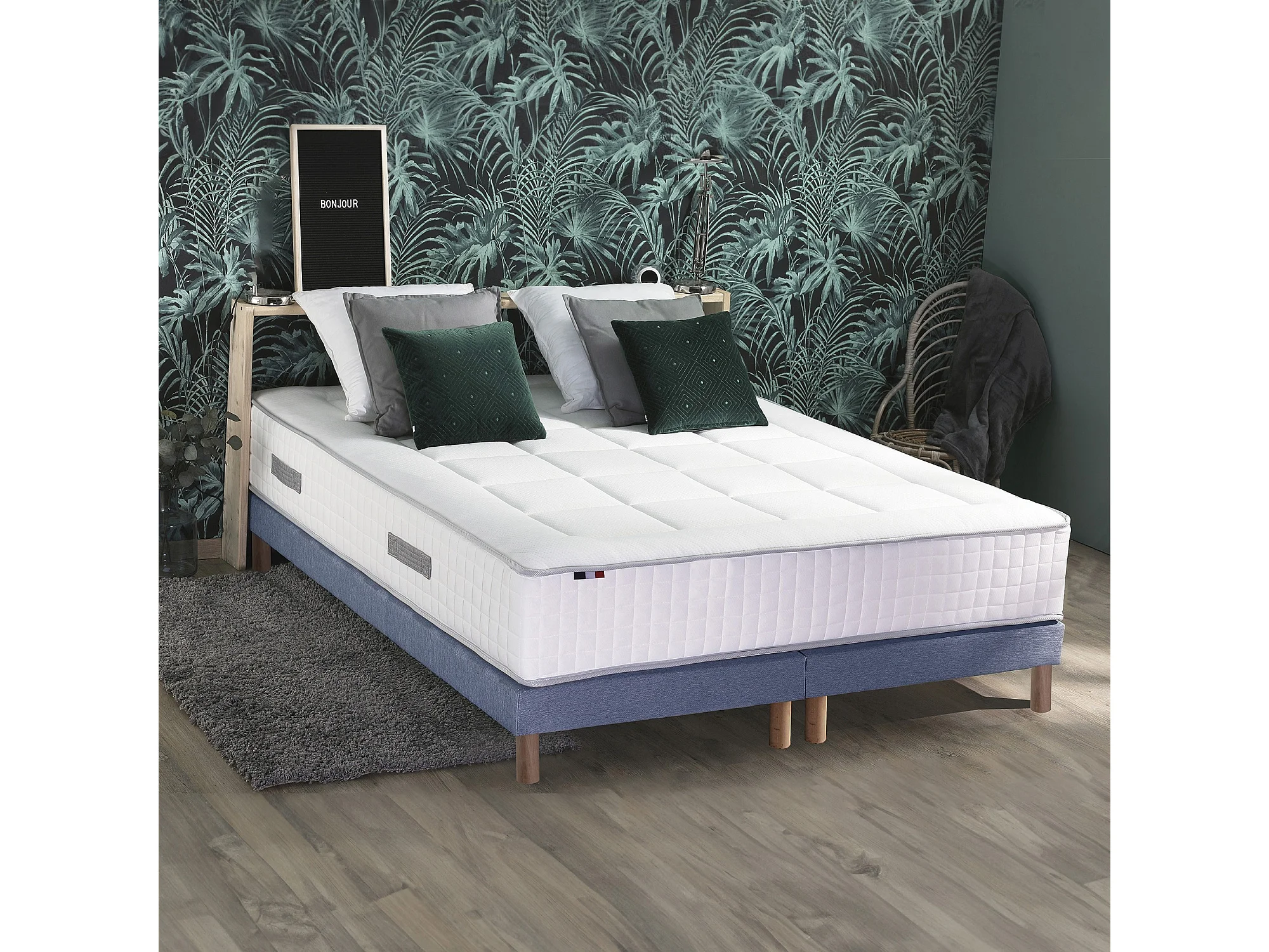 Ensemble BELLAGIO 2, matelas mémoire de forme, sommier et couette Dimensions - 2x90 x 200 cm, Sommier - Bleu denim