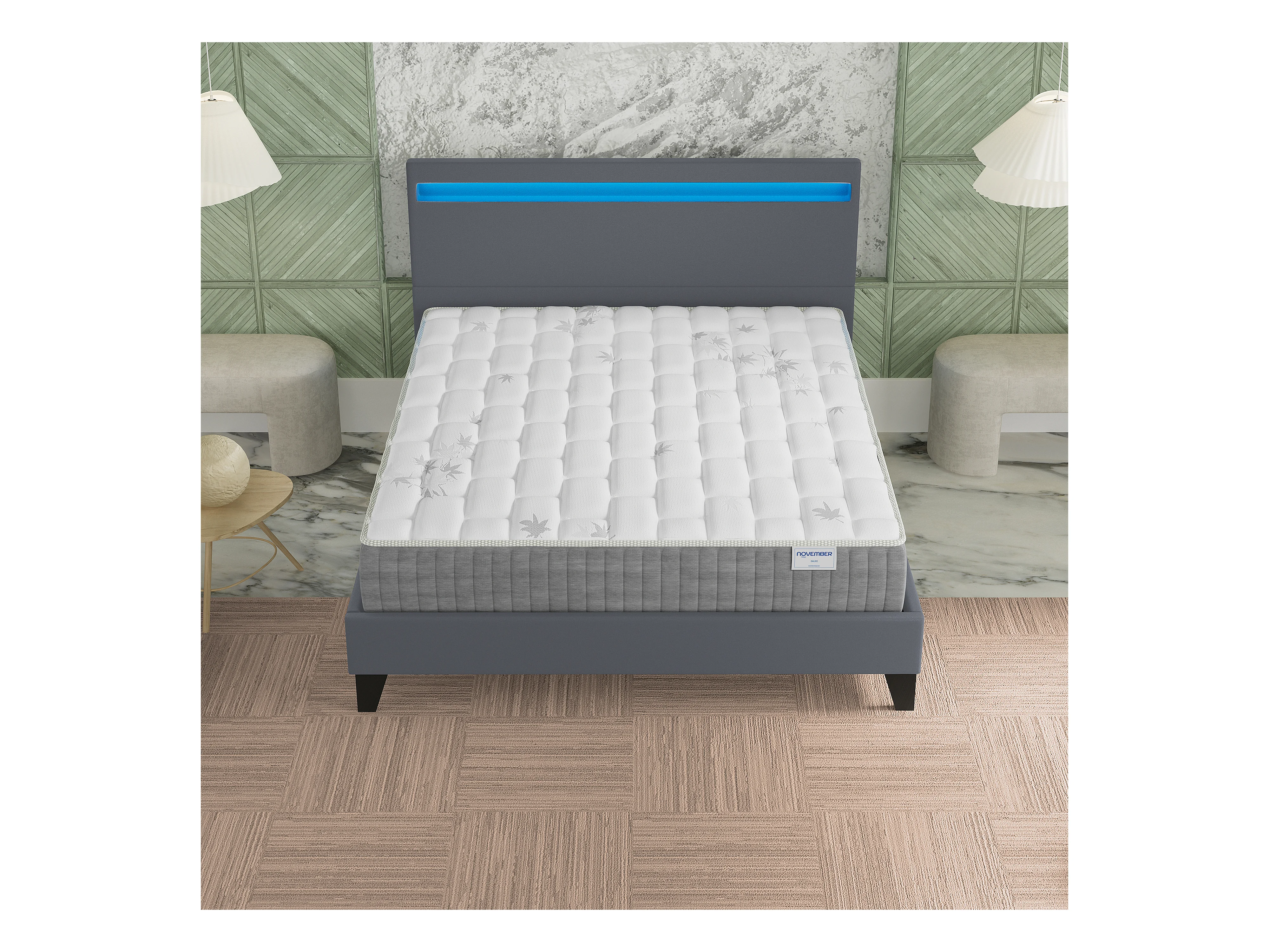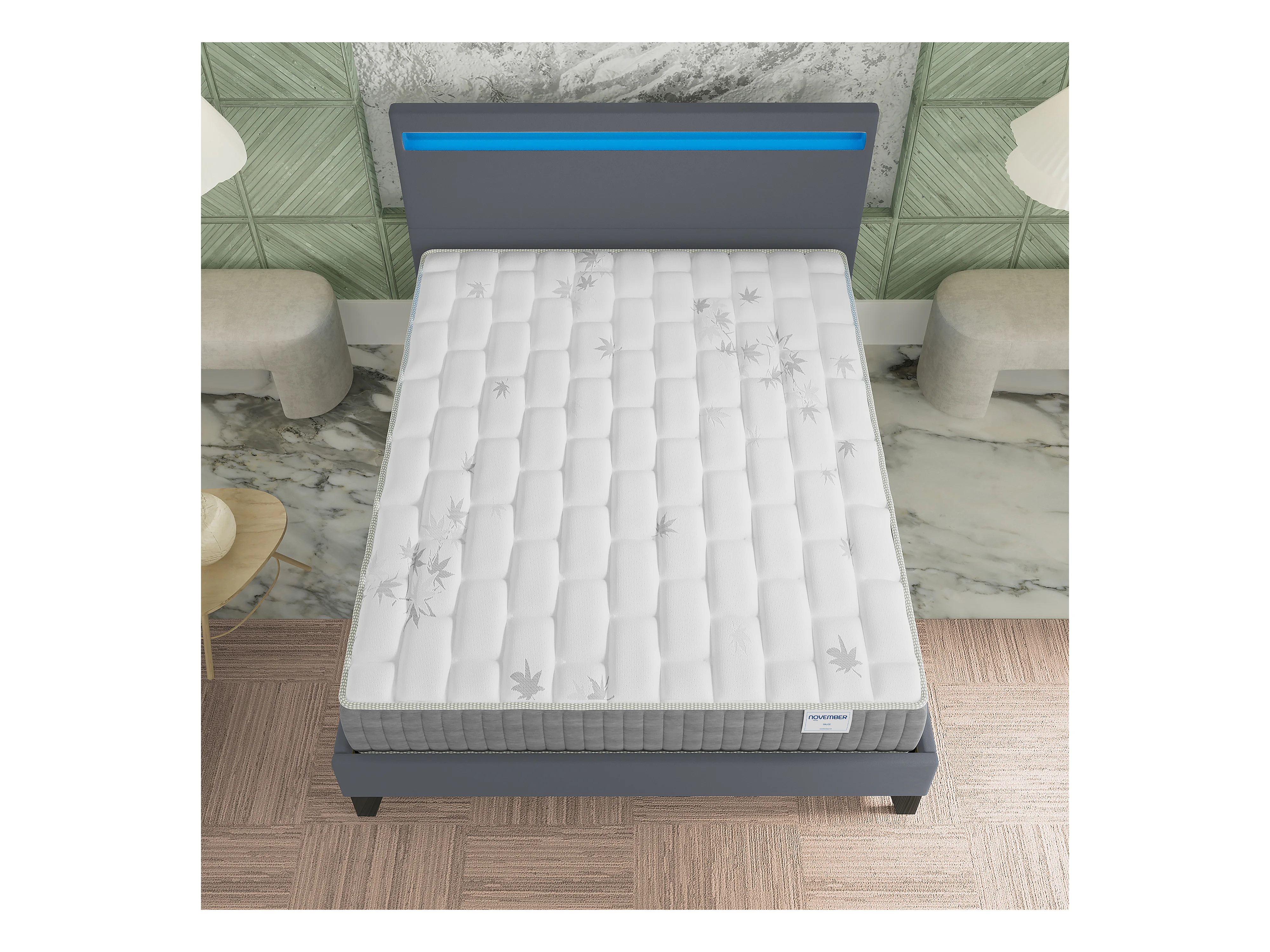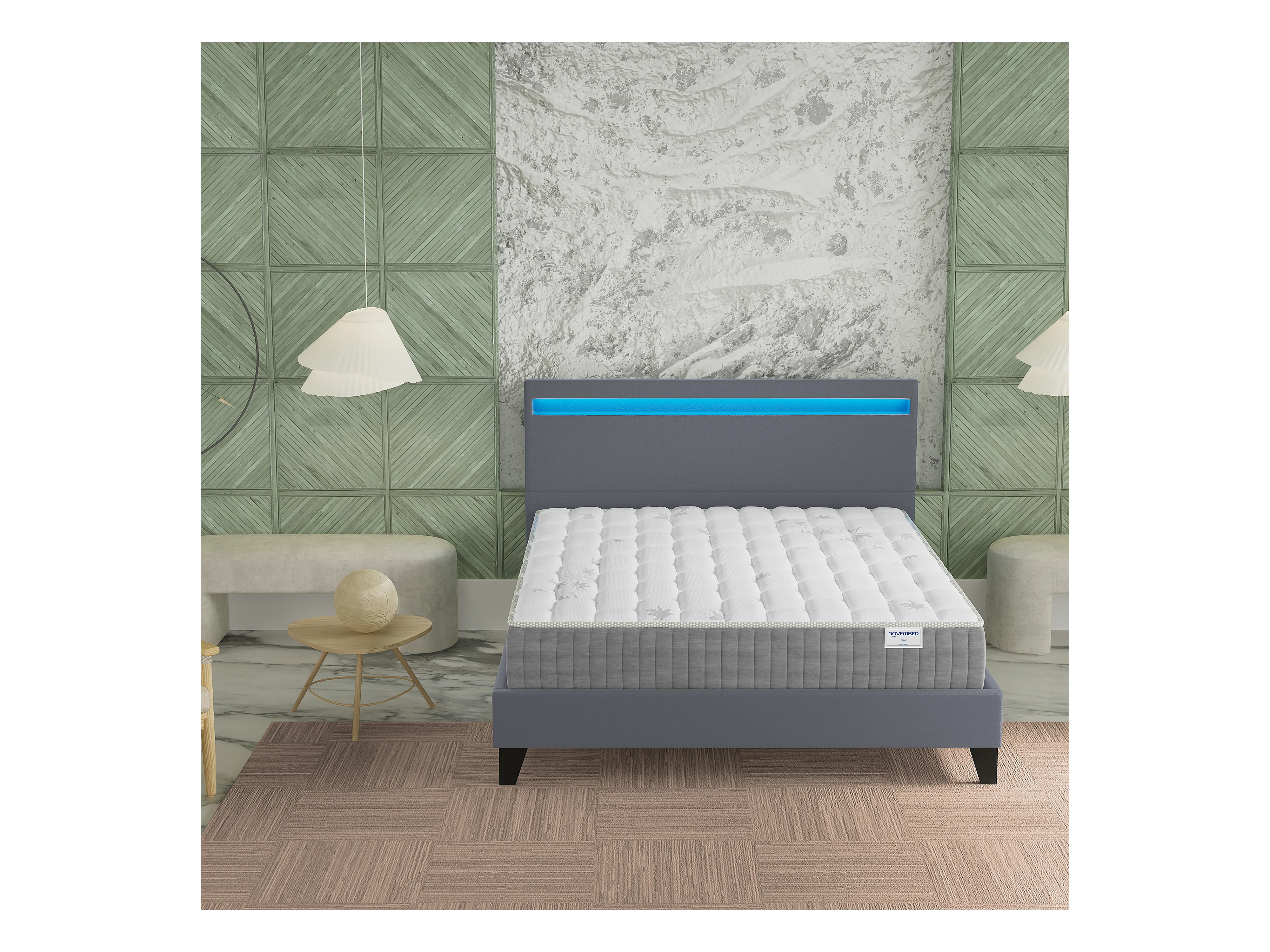 Ensemble Matelas + lit 120x190 cm, Matelas 25cm ressorts ensachés + mémoire de forme, lit à tête de lit LED similicuir gris