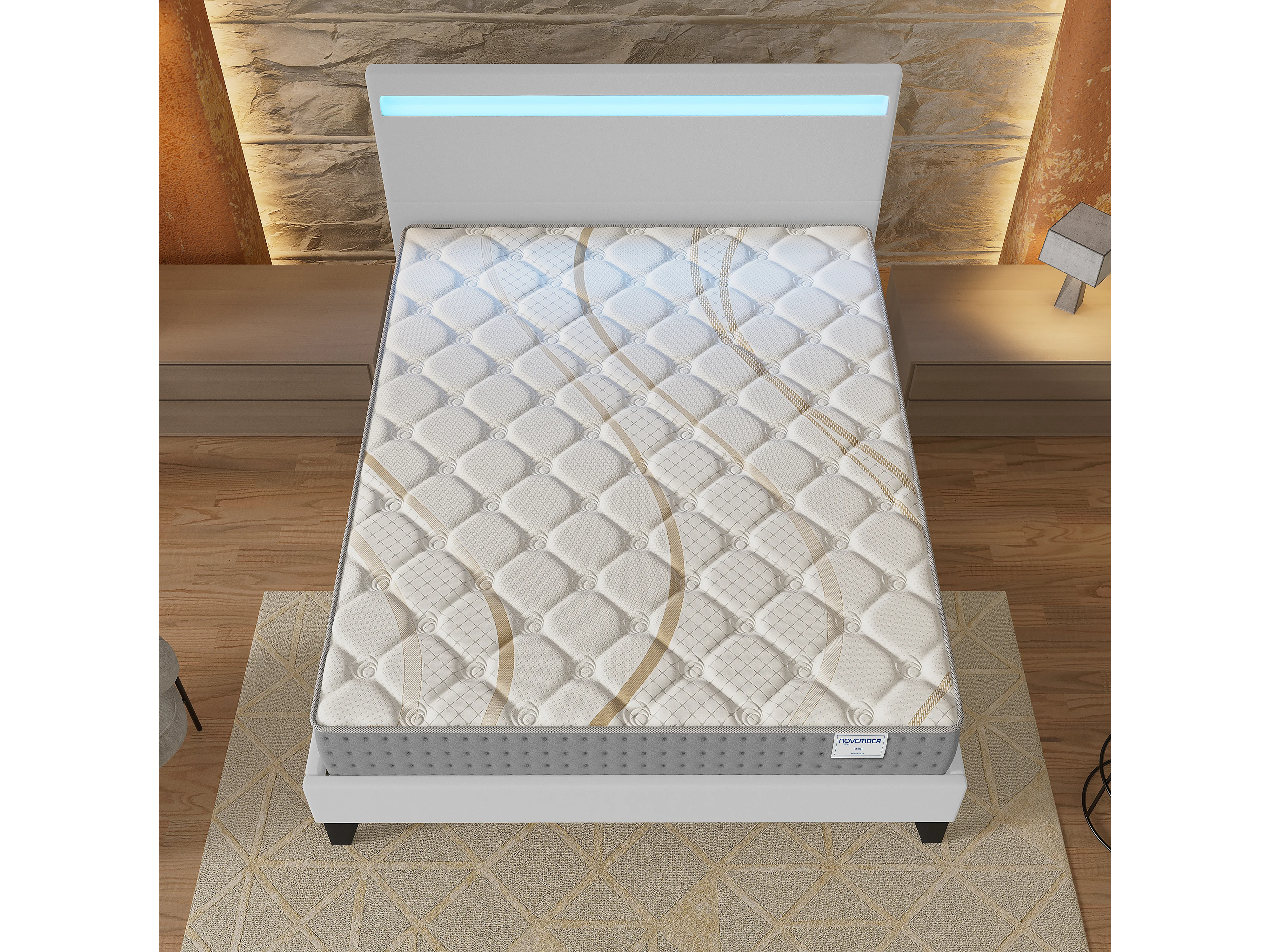Ensemble Matelas + lit 120x190 cm, Matelas 25cm ressorts ensachés, accueil mousse, lit à tête de lit LED similicuir blanc