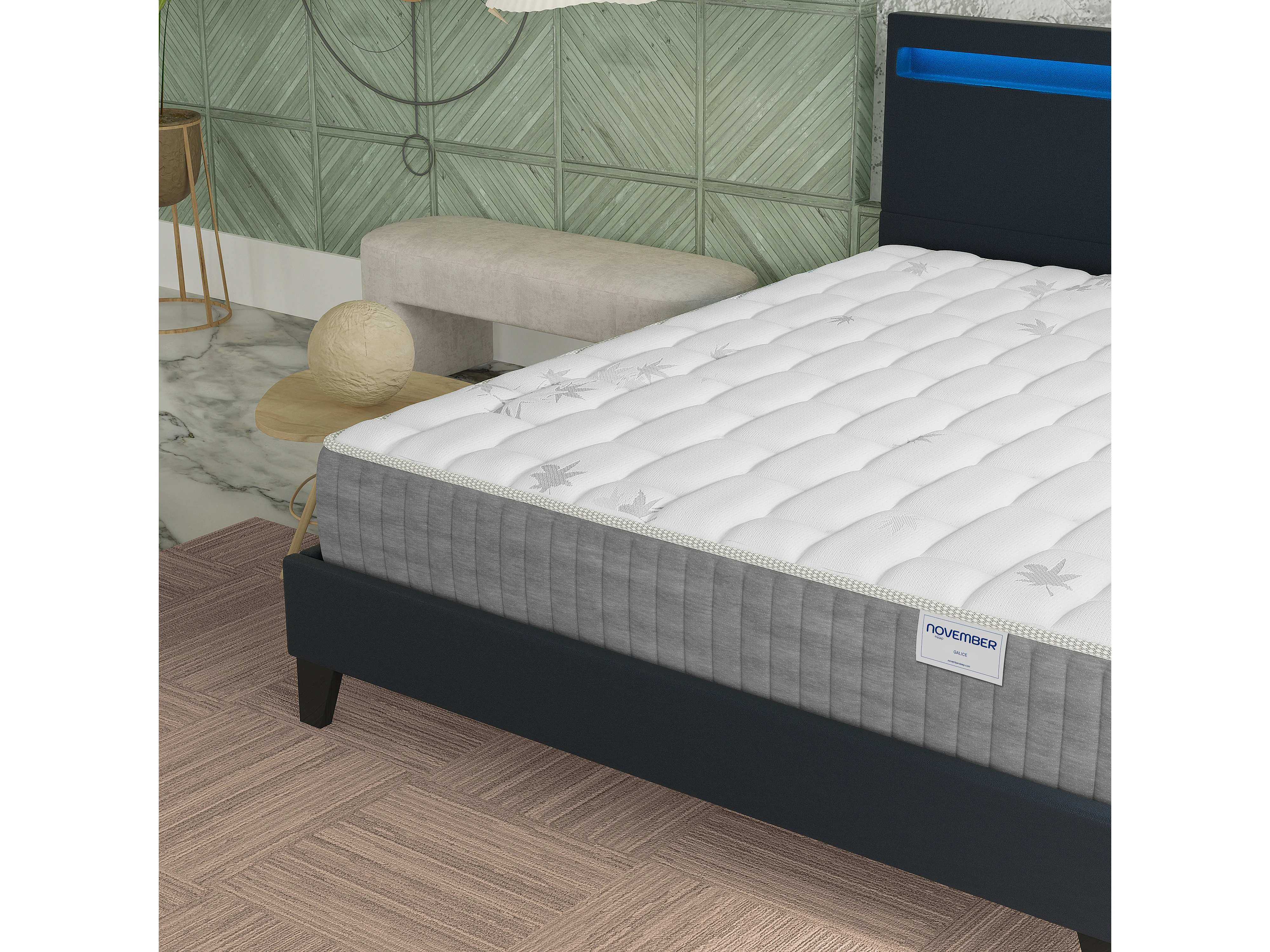 Ensemble Matelas + lit 140x190 cm, Matelas 25cm ressorts ensachées + mémoire de forme, lit à tête de lit LED similicuir noir