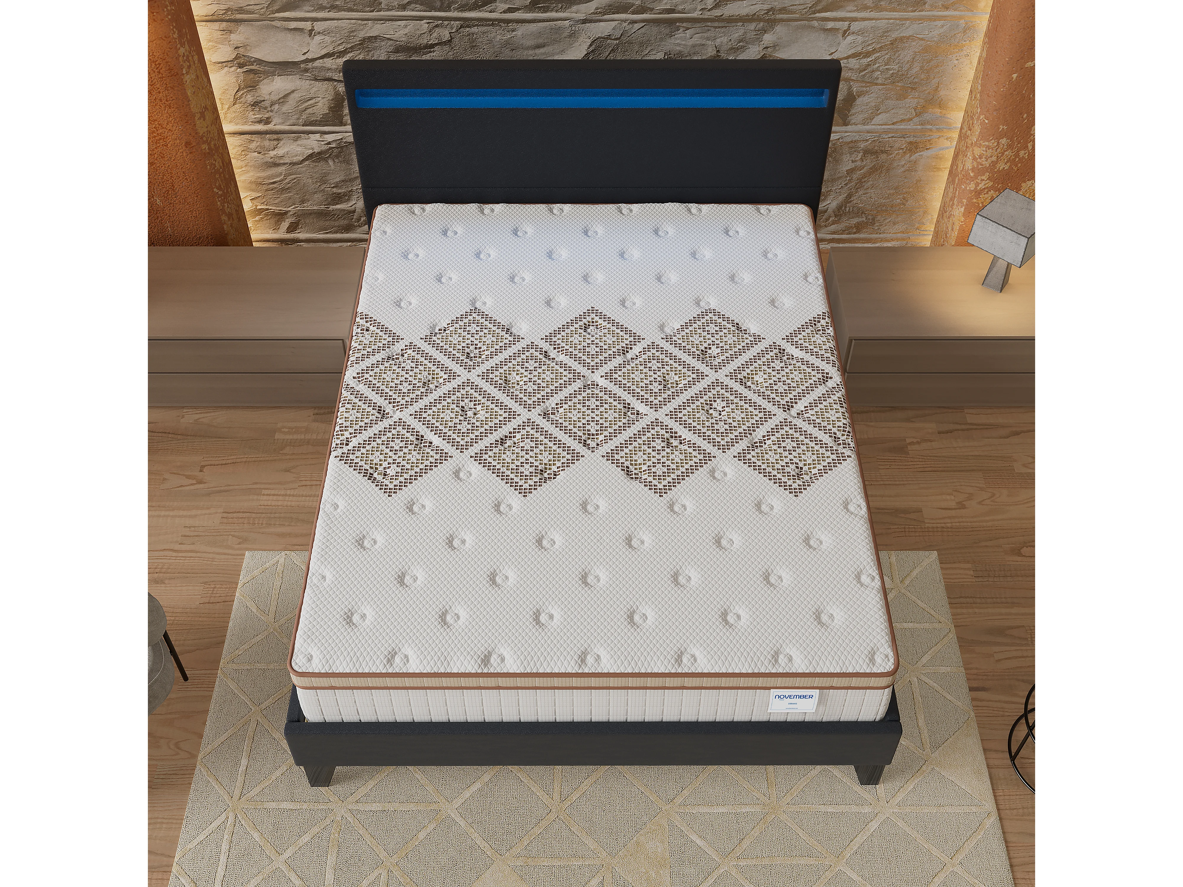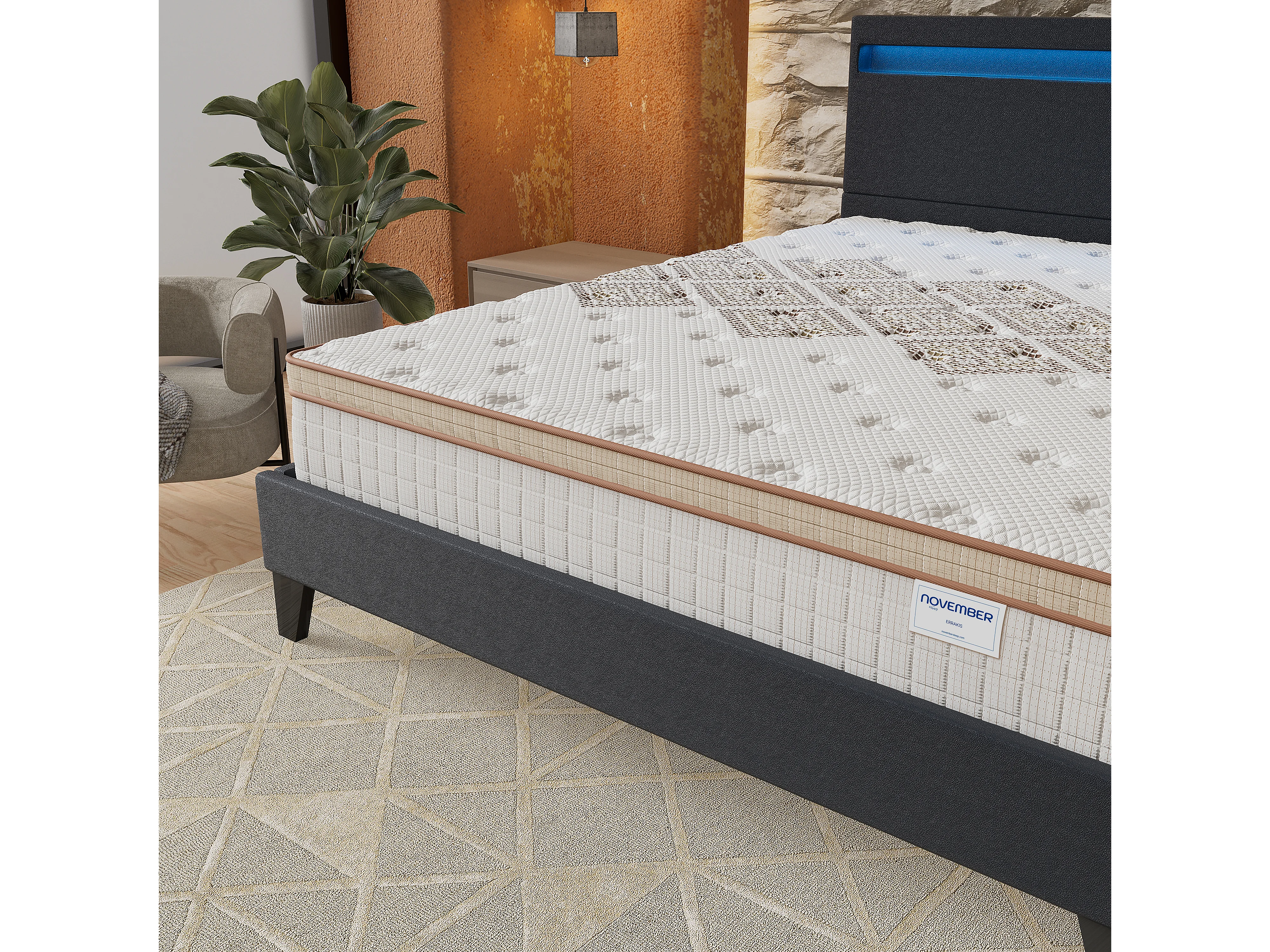 Ensemble Matelas + lit 140x190 cm, Matelas 28cm ressorts ensachés, accueil mousse, lit à tête de lit LED similicuir noir