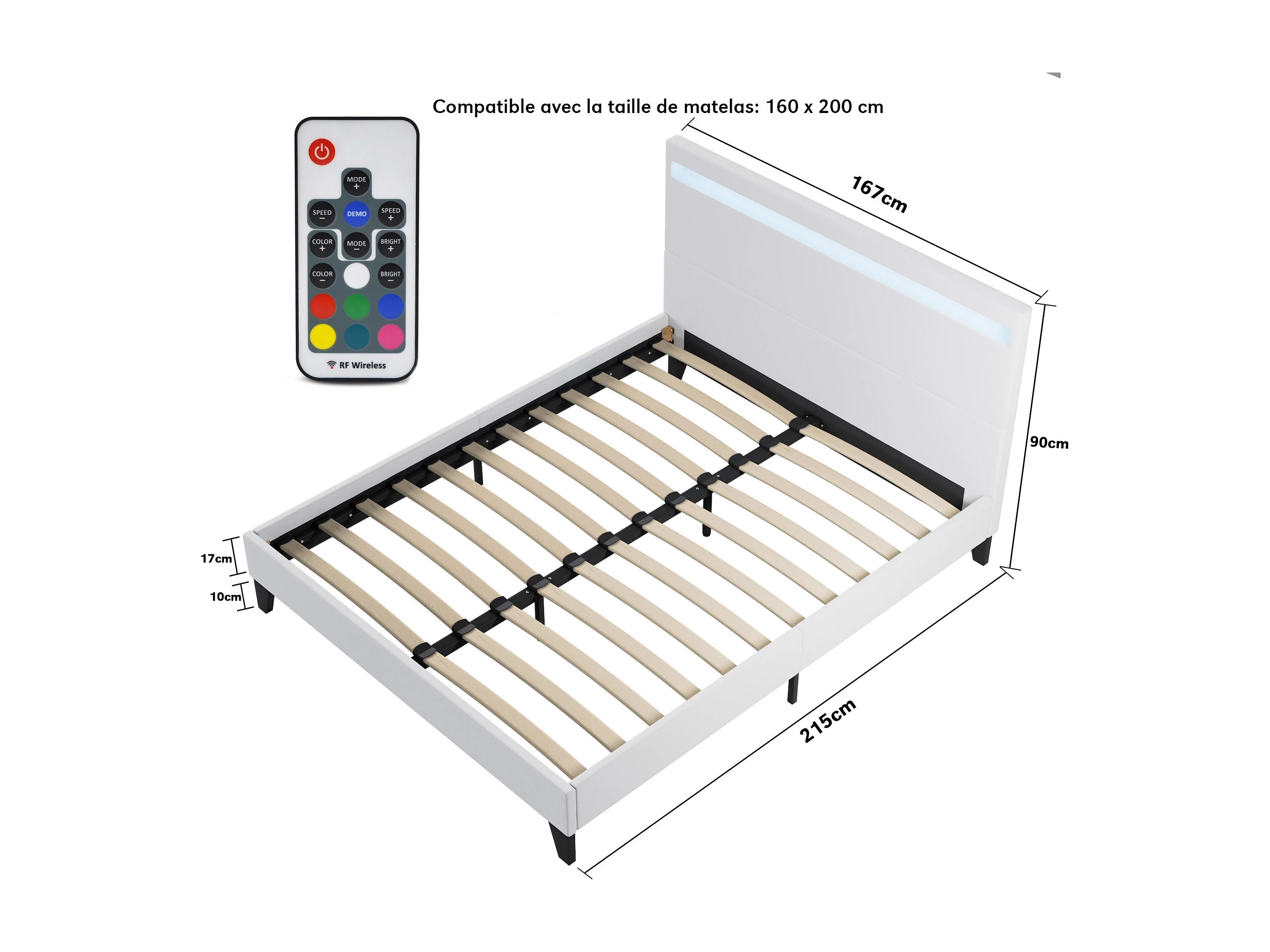 Ensemble Matelas + lit 160x200 cm, Matelas 20cm ressorts ensachés, accueil mousse, lit à tête de lit LED similicuir blanc