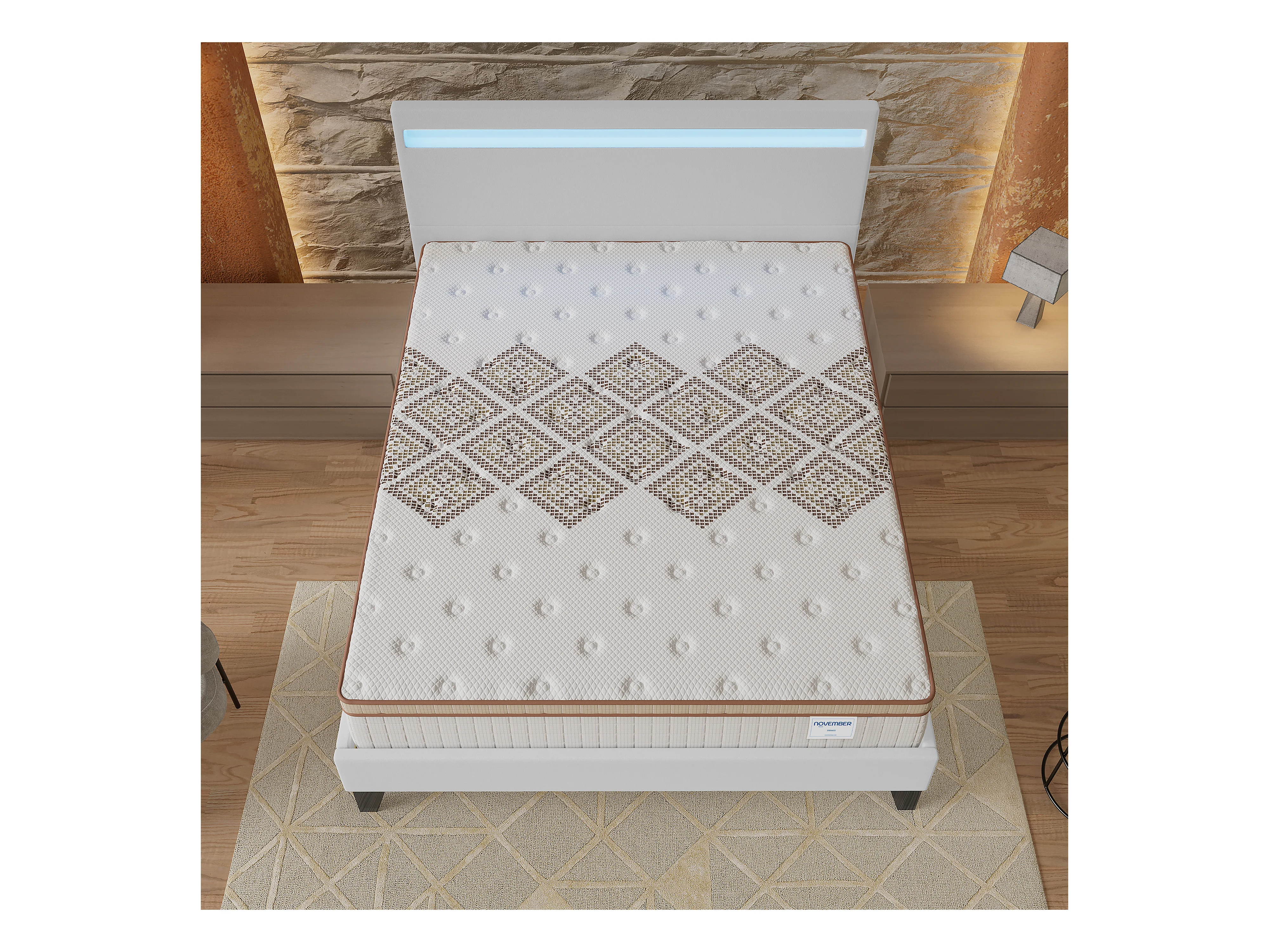 Ensemble Matelas + lit 160x200 cm, Matelas 28cm ressorts ensachés, accueil mousse, lit à tête de lit LED similicuir blanc