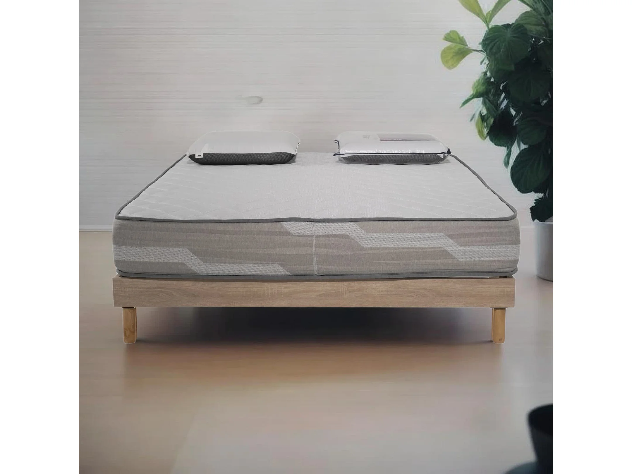 Ensemble matelas 140x190cm ressorts ensachés Select et 2 oreillers 70x40 et Sommier kit chêne