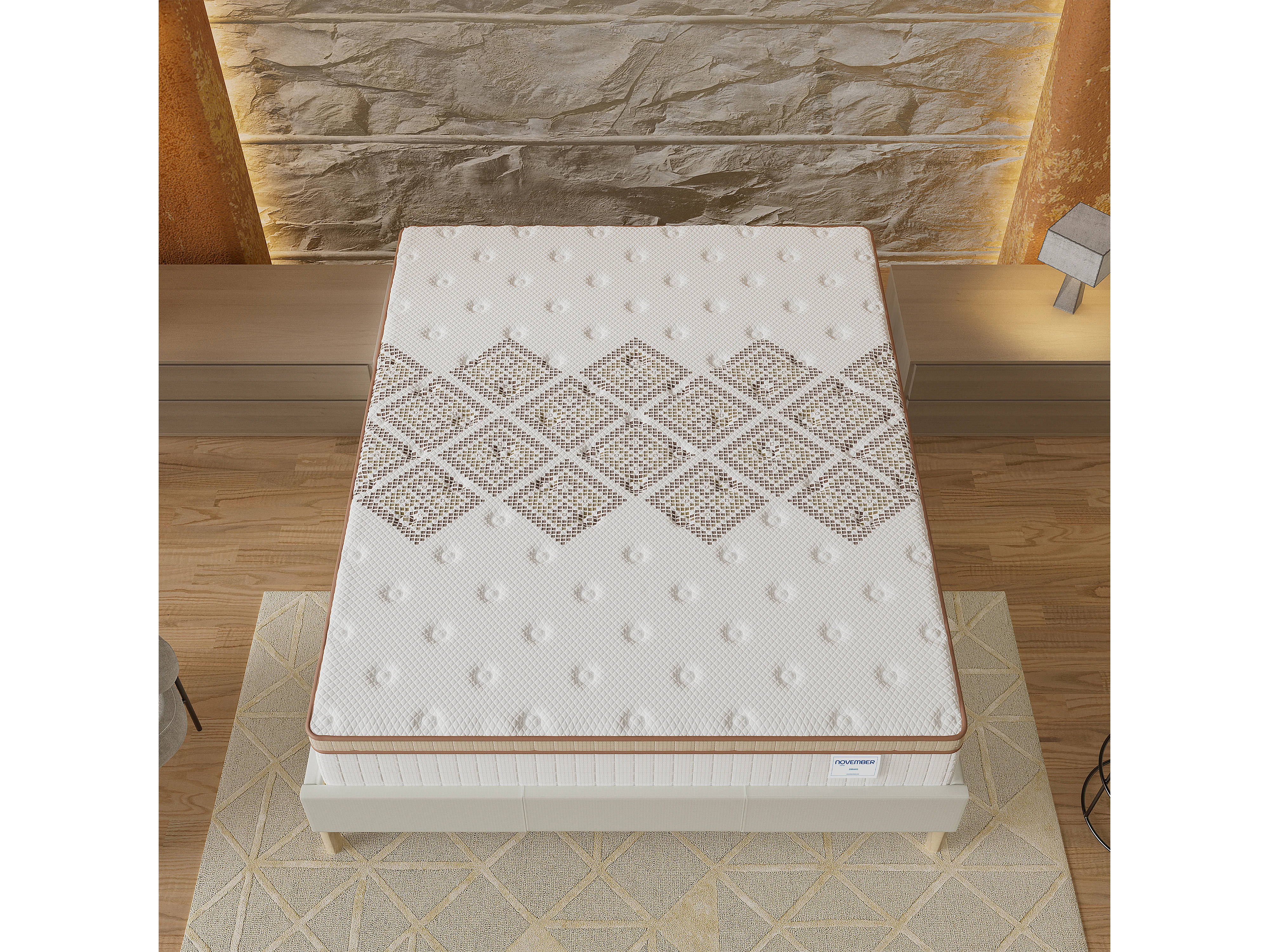 Ensemble matelas + lit 120x190 cm, matelas 28cm ressorts ensachés, accueil mousse, lit à lattes en bois, tissu blanc crème