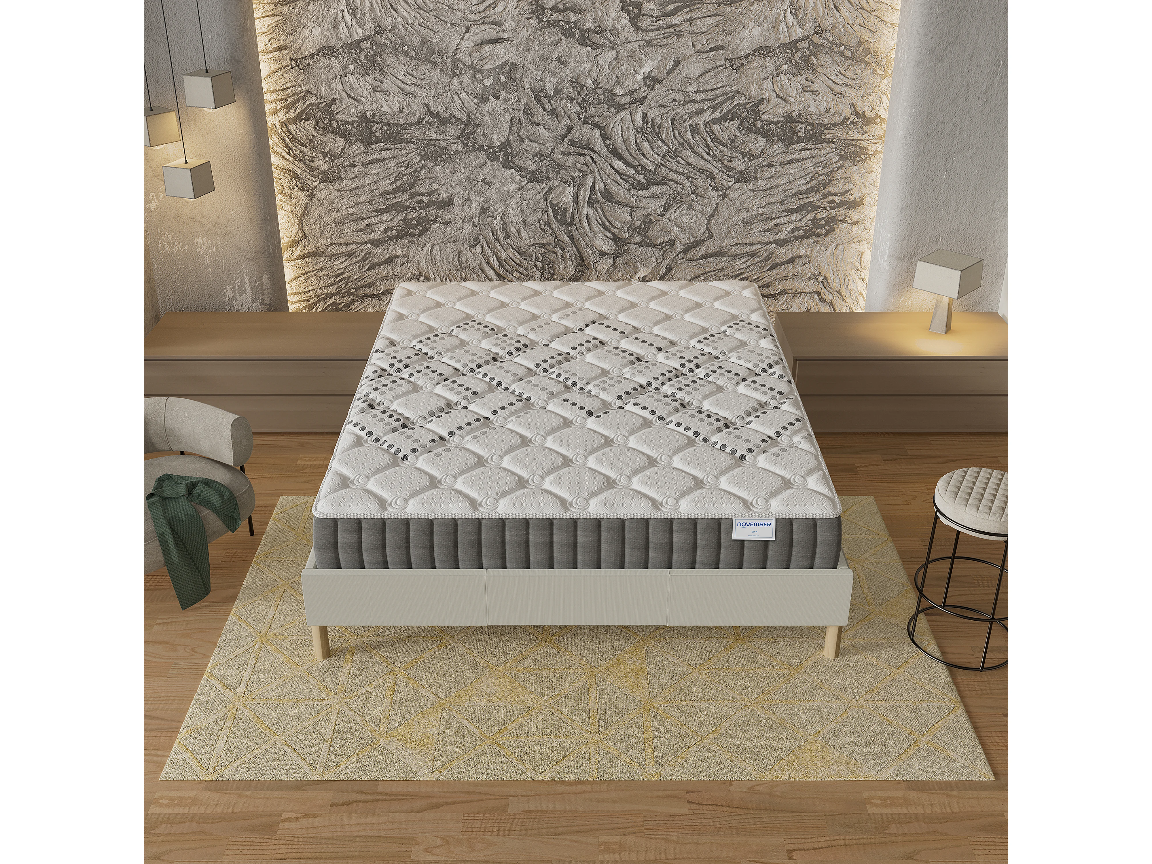Ensemble Matelas + lit 140x200 cm, Matelas 20cm ressorts ensachés, accueil mousse, lit à lattes en bois, tissu blanc