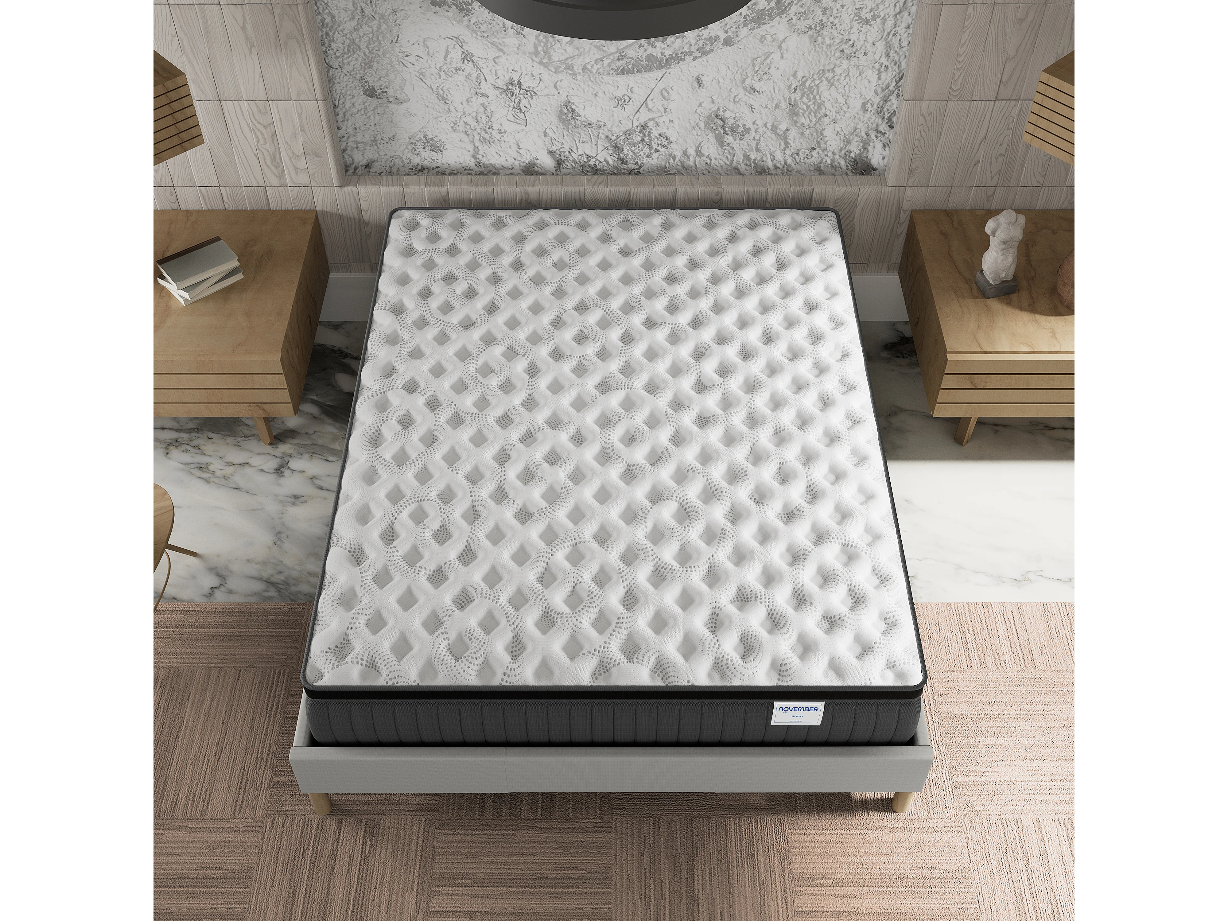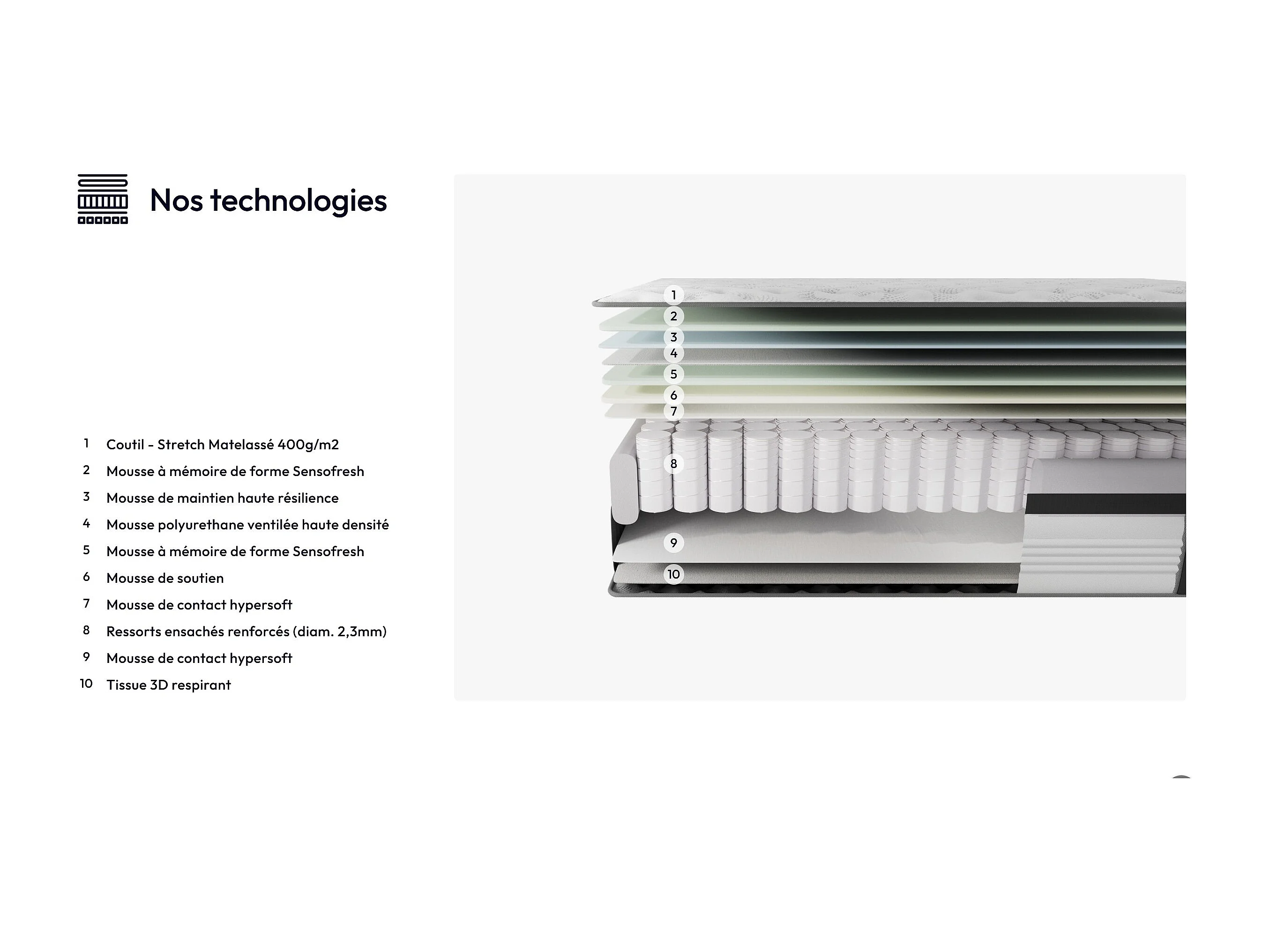 Ensemble matelas + lit 180x200 cm, matelas 30cm ressorts ensachés, accueil mémoire de forme, lit à lattes en bois, tissu blanc