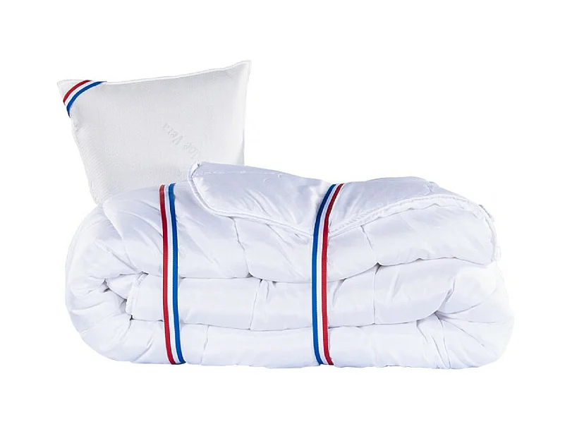 Ensemble Matelas Rêverie, 30 cm, mousses haute densité, ferme, face été/hiver + sommier blanc ep 13cm + oreiller + couette, 90x190cm