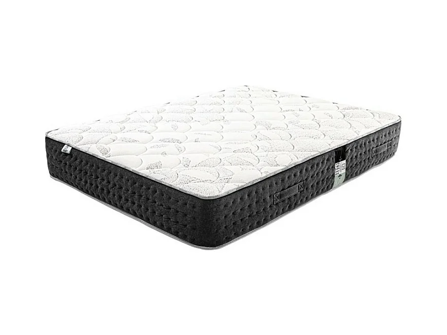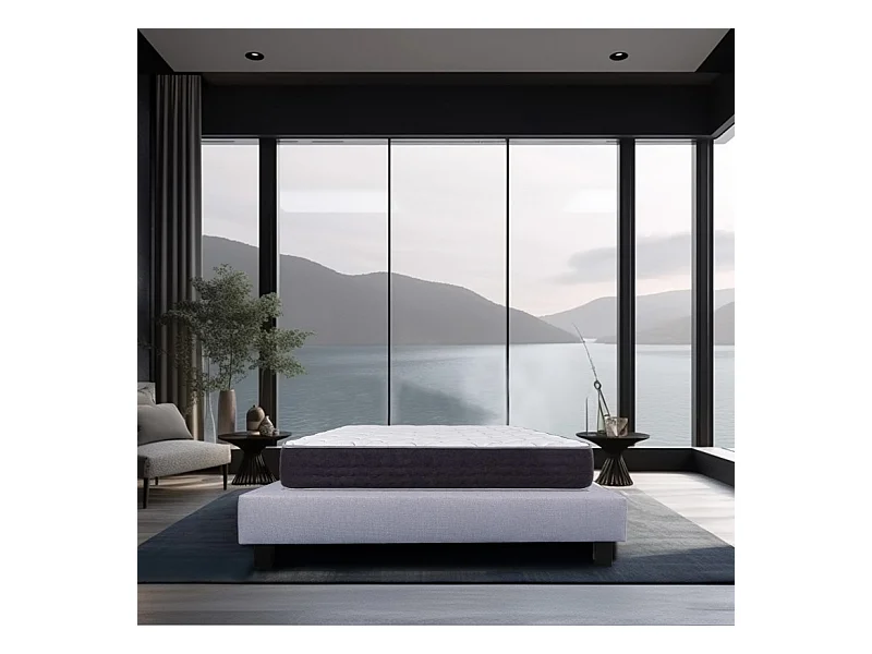 Ensemble Matelas Serenite, 27 cm, ressorts ensachés, ferme, face été/hiver + sommier gris ep20cm, 140x190cm