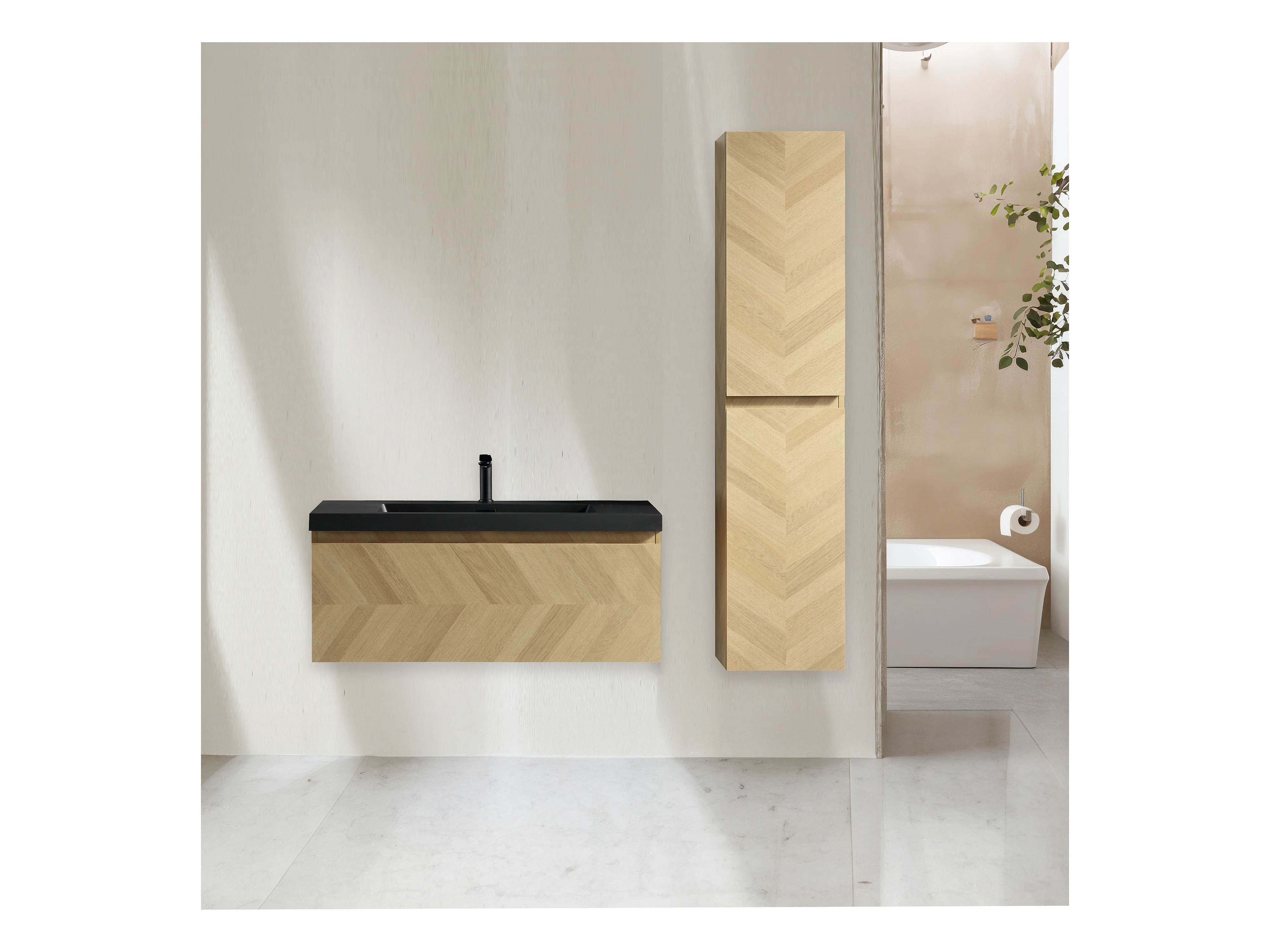 Ensemble salle de bain 120 cm chevron aspect chêne Aquapunto
