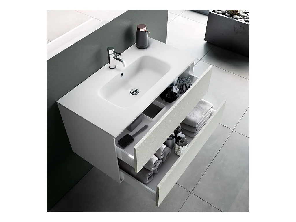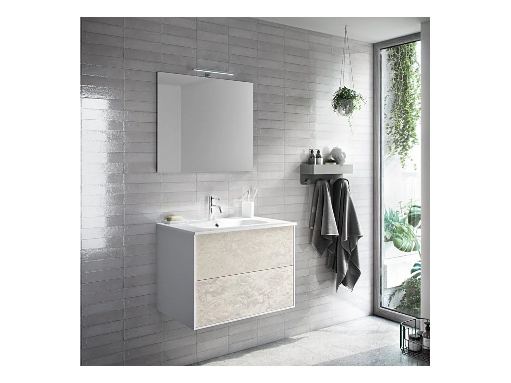 Ensemble meuble de salle de bain 2 tiroirs bois blanc et miroir à LED Oga L 70cm