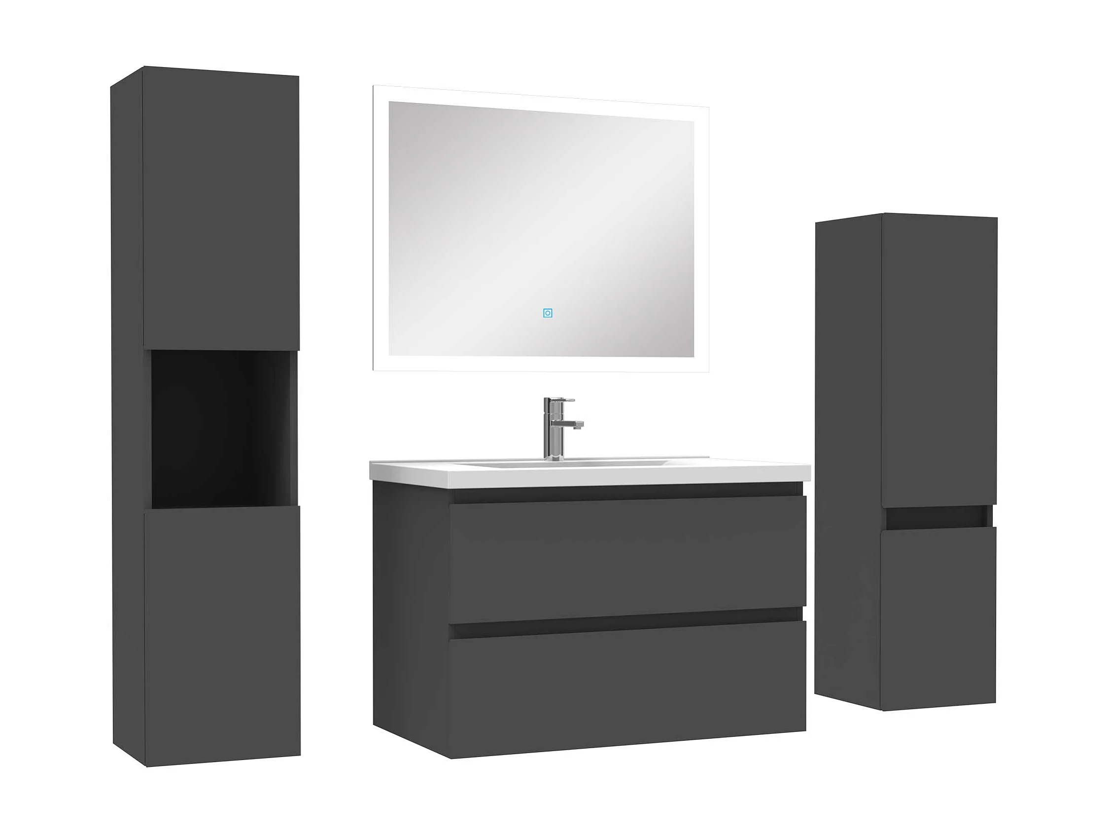 Ensemble meuble de salle de bain 80cm simple vasque + colonne de rangement + miroir Anthracite