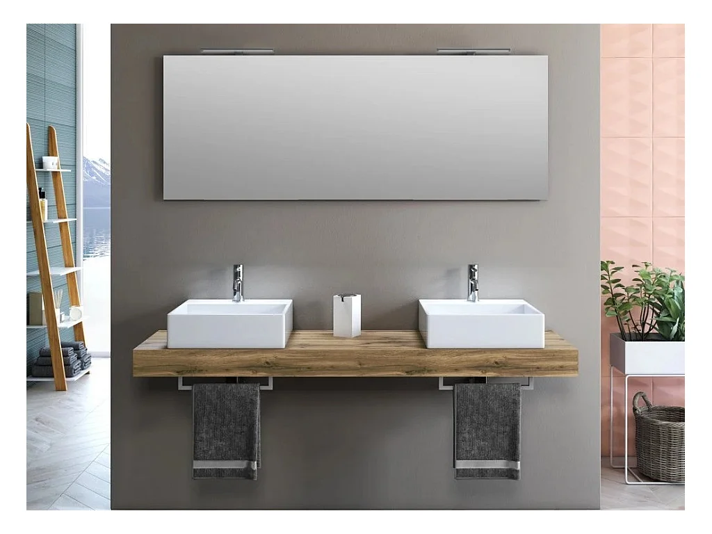 Ensemble meuble de salle de bain chêne clair double vasque et miroir lumineux Kyo L 165cm