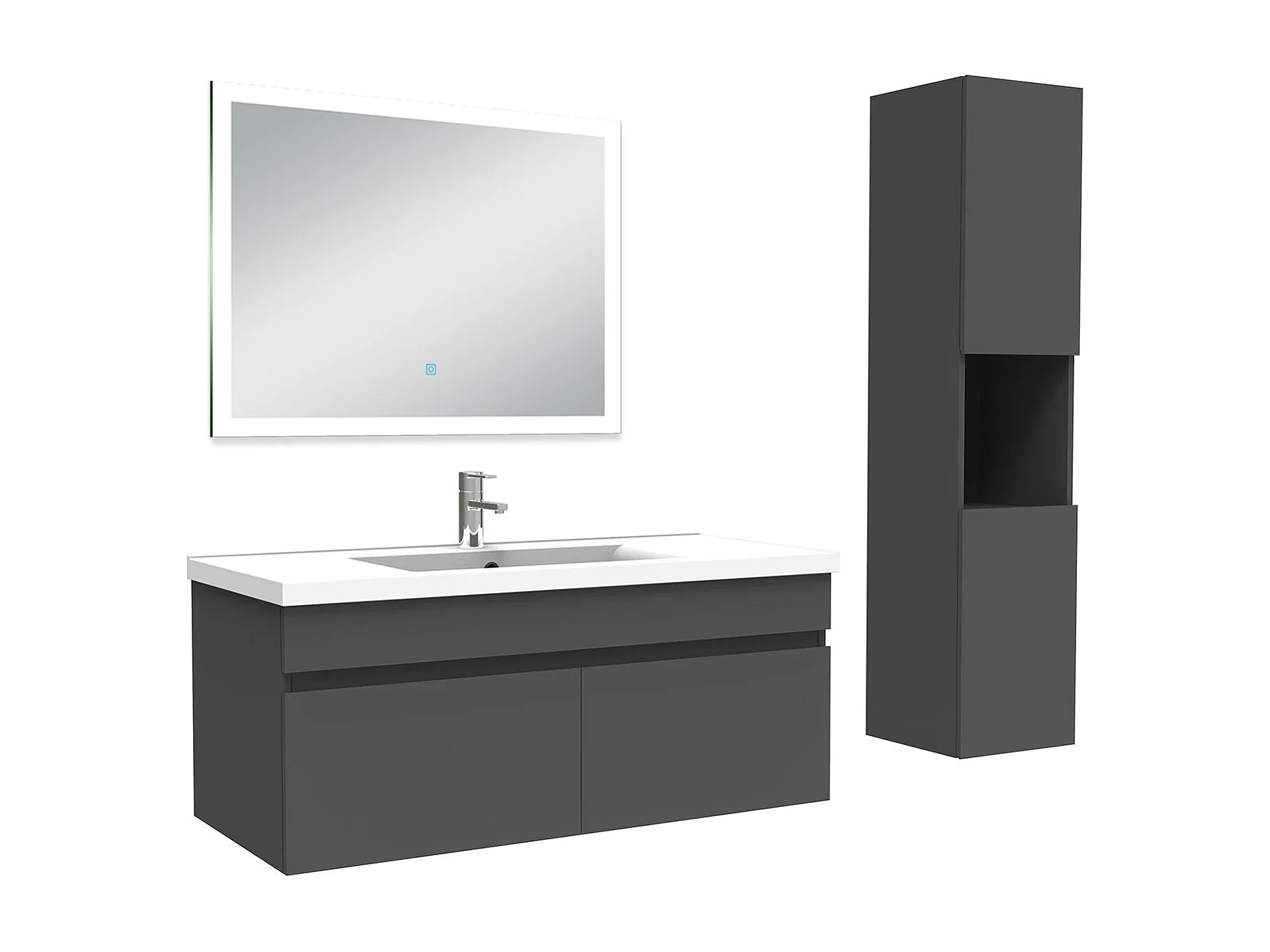 Ensemble meuble Salle de Bain 100cm avec vasque + colonne + miroir lumineux dimmable anthracite
