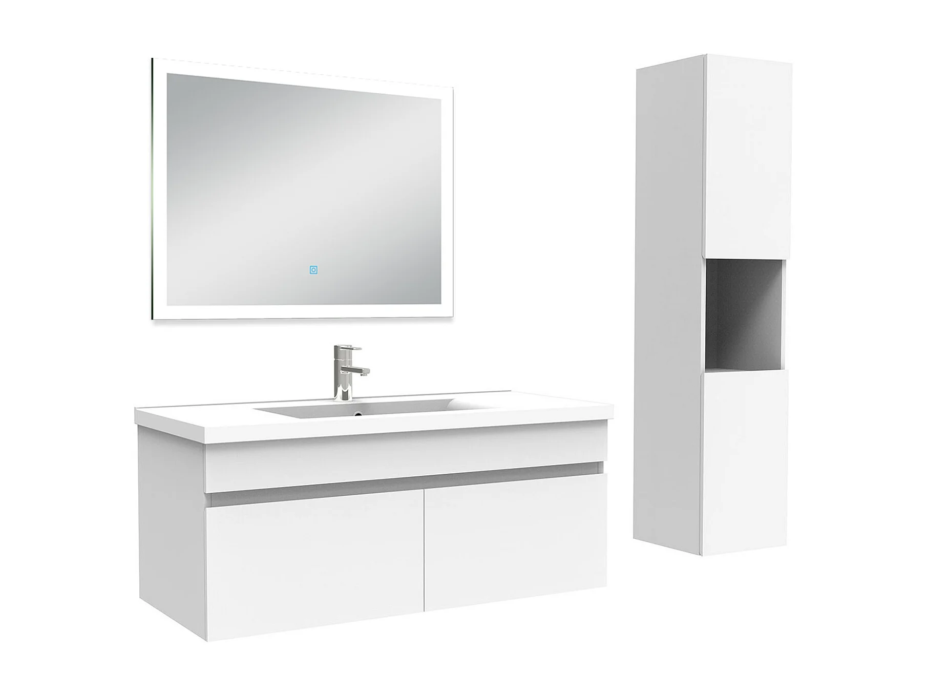 Ensemble meuble Salle de Bain 100cm avec vasque + colonne + miroir lumineux dimmable blanc