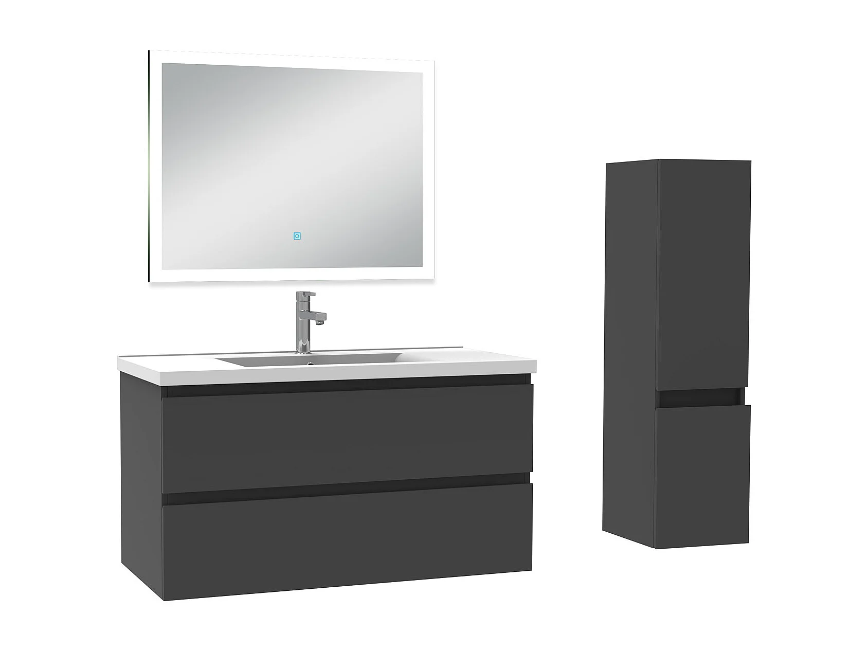 Ensemble meuble Salle de Bain 100cm avec vasque et colonne et miroir lumineux 3 couleurs anthracite