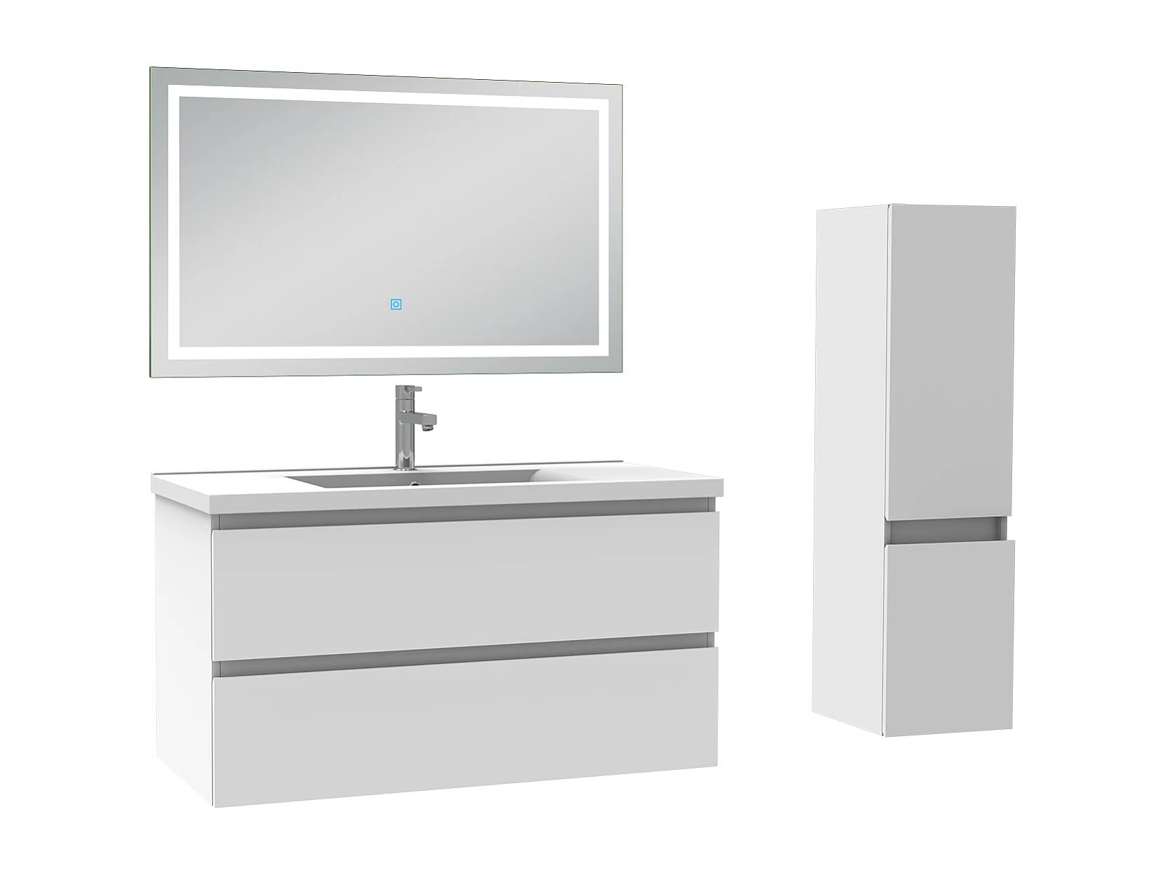 Ensemble meuble salle de Bain 100cm simple vasque avec colonne et miroir 3 couleurs blanc