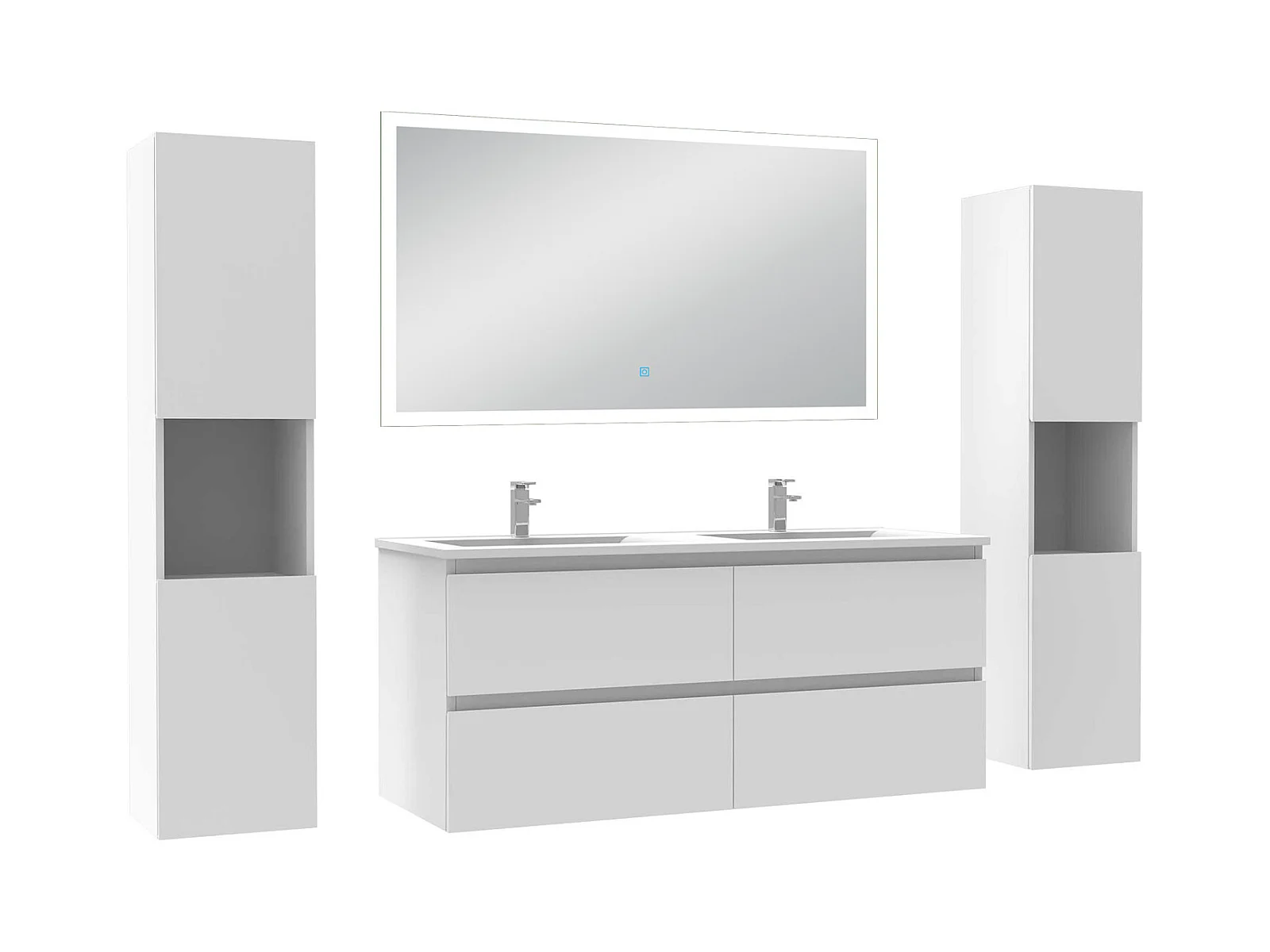 Ensemble meuble Salle de Bain 120cm avec colonne + miroir lumineux dimmable blanc