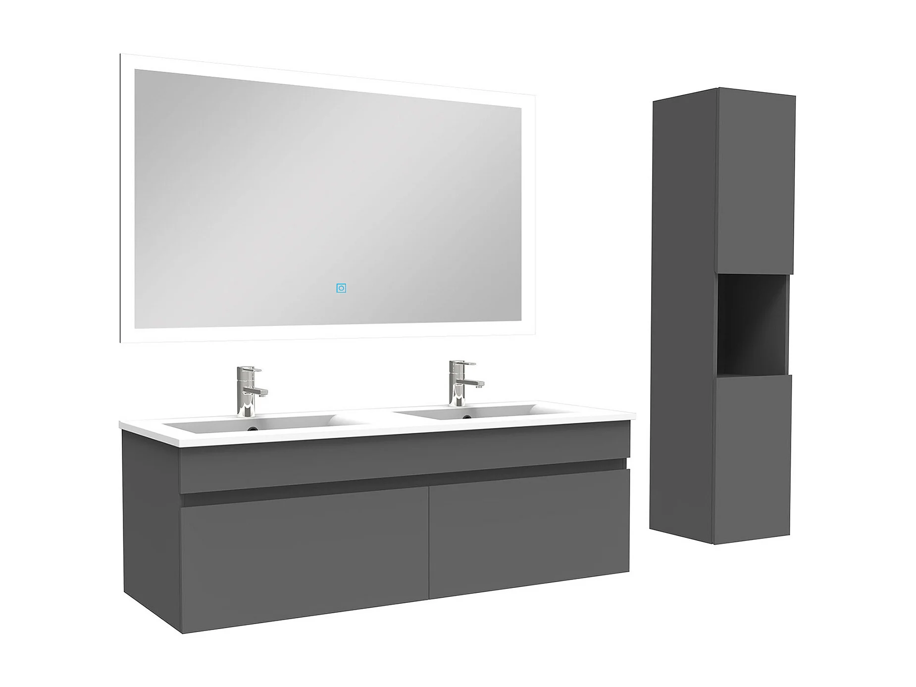 Ensemble meuble Salle de Bain 120cm avec vasque + colonne + miroir lumineux dimmable anthracite