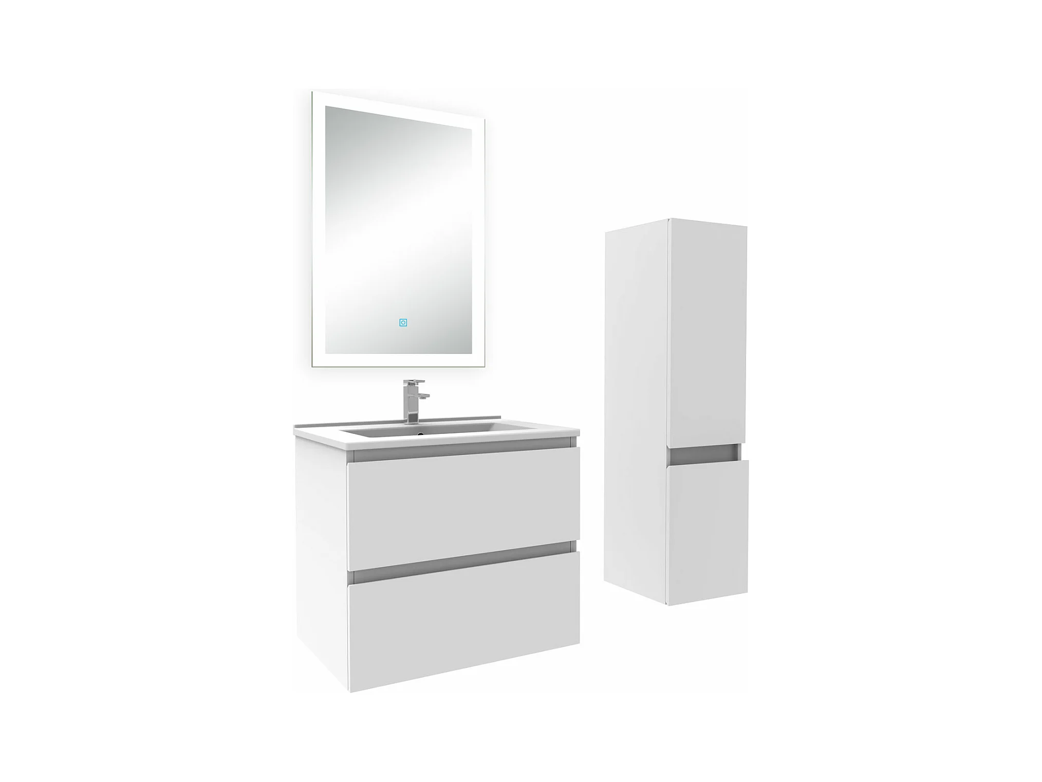 Ensemble meuble Salle de Bain 60cm avec vasque et colonne et miroir lumineux 3 couleurs blanc