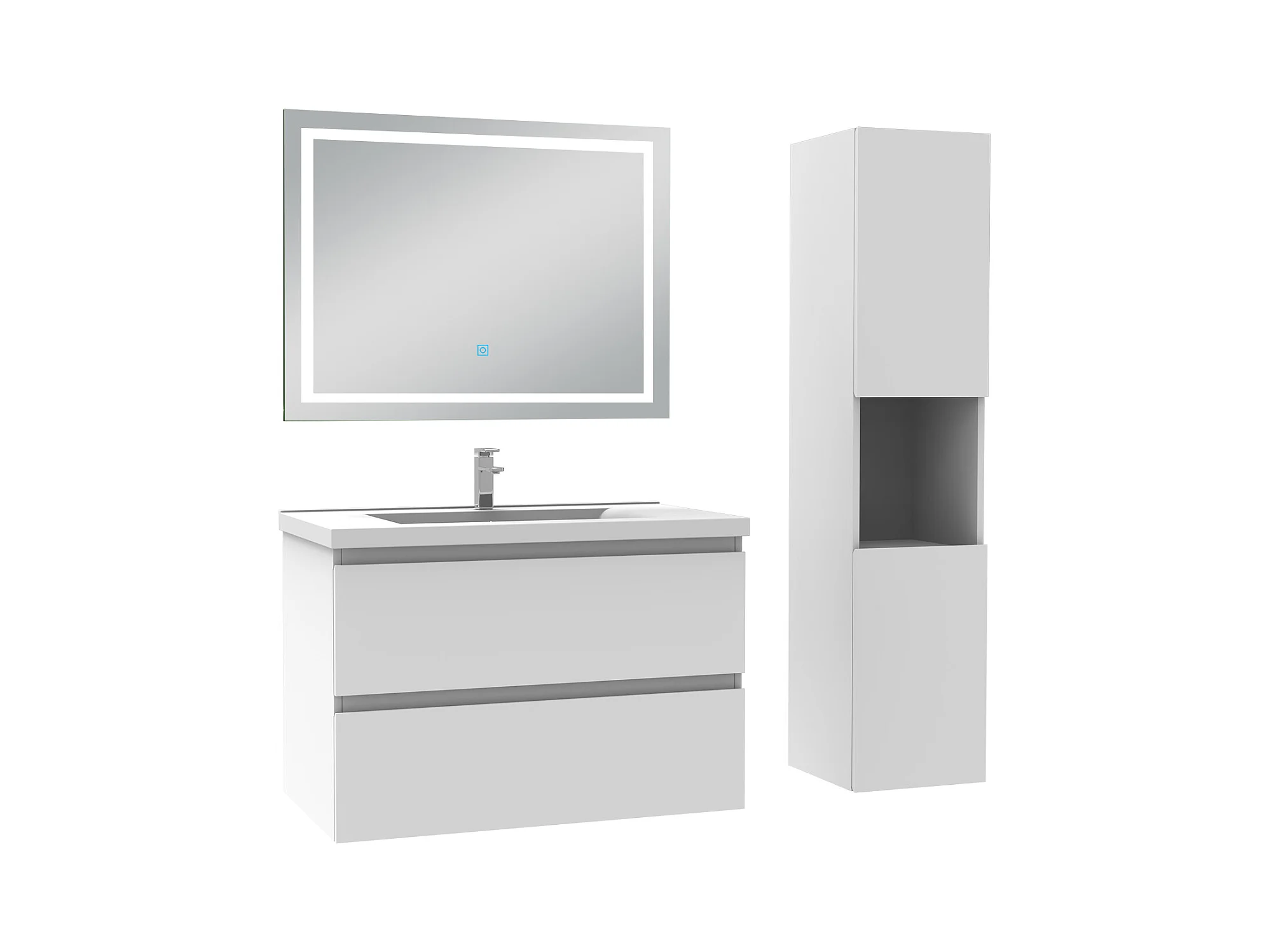 Ensemble meuble salle de Bain 80cm avec colonne et miroir 3 couleurs blanc