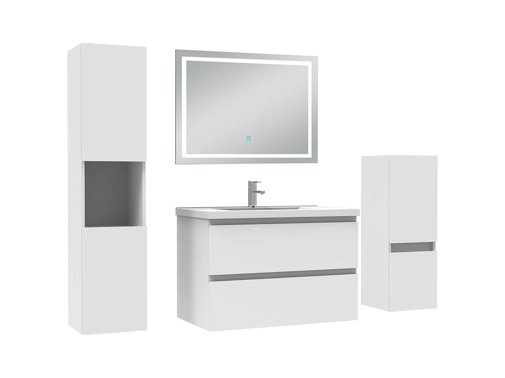 Ensemble meuble salle de Bain 80cm avec colonne et miroir mural lumineux 3 couleurs blanc