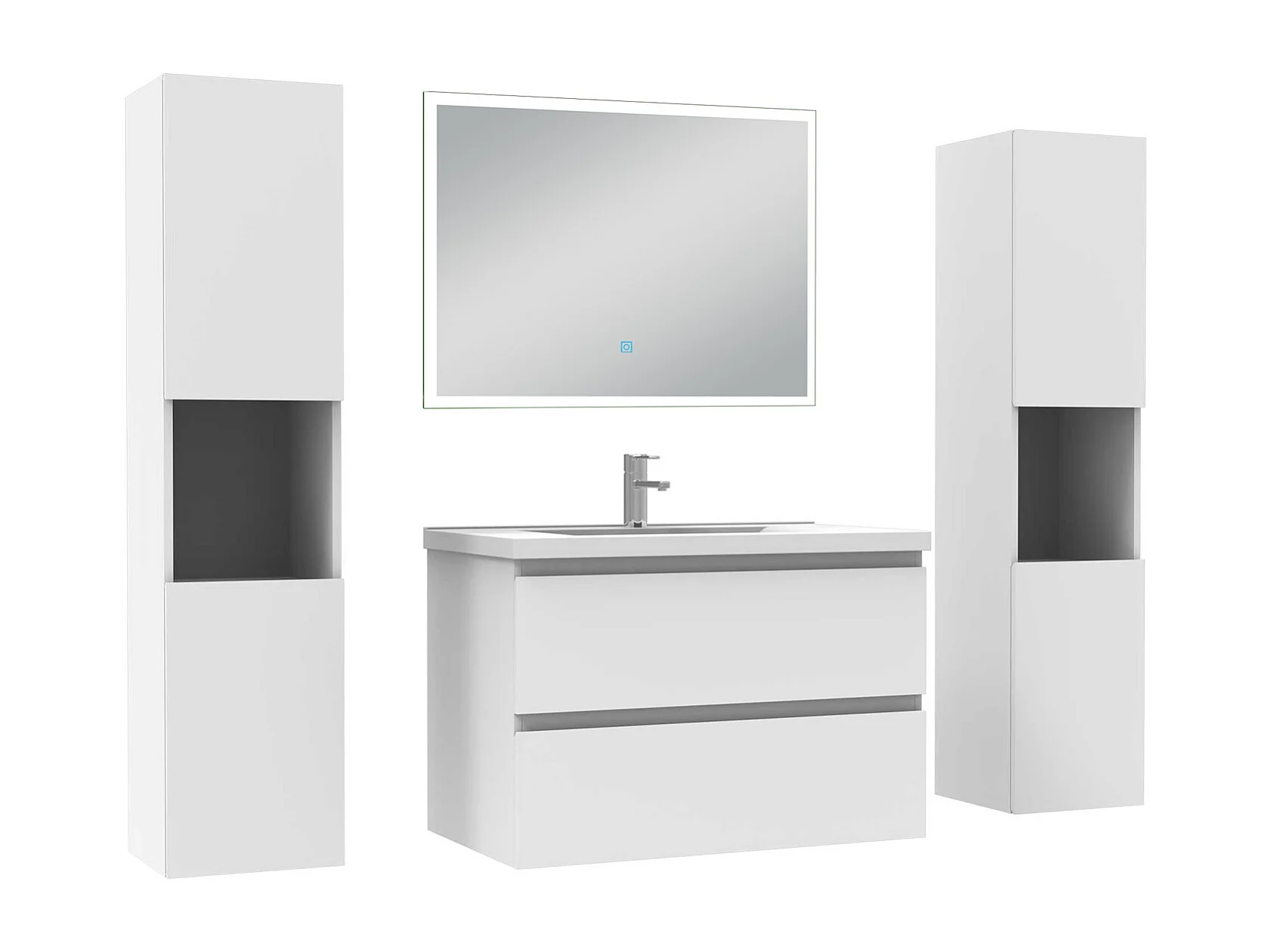 Ensemble meuble Salle de Bain 80cm avec colonne + miroir lumineux dimmable blanc