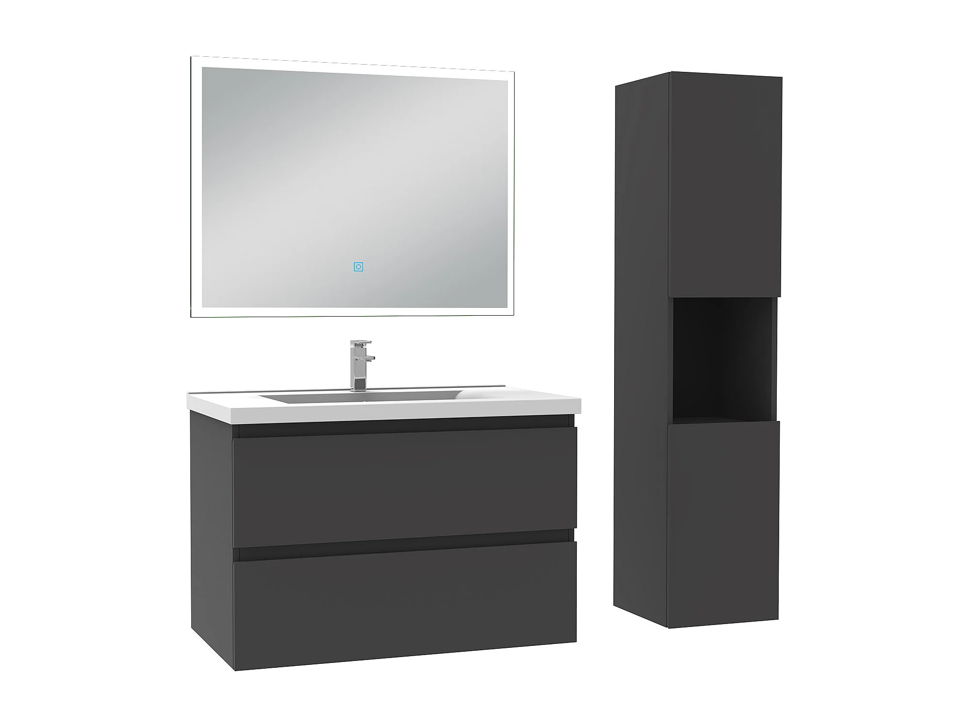 Ensemble meuble Salle de Bain 80cm avec vasque et colonne et miroir lumineux dimmable anthracite