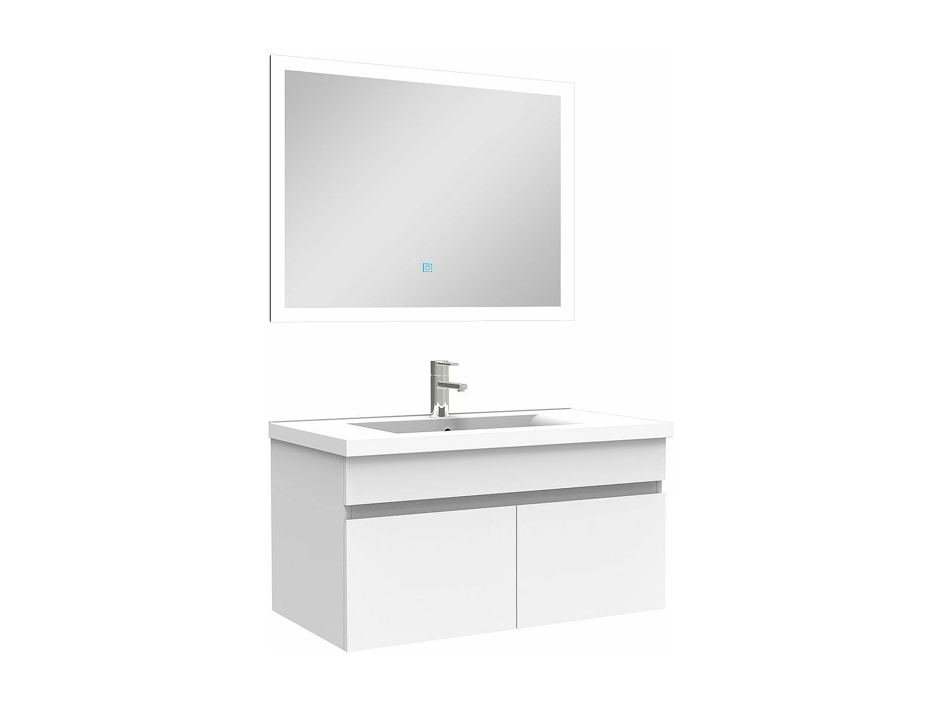 Ensemble meuble Salle de Bain 80cm simple vasque + miroir lumineux 3 couleurs + dimmable blanc