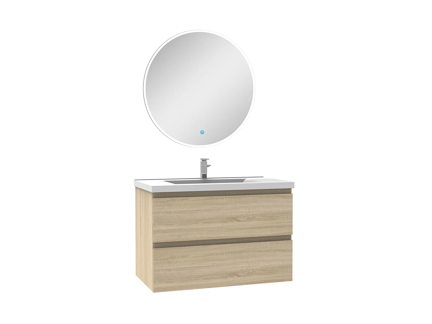 Ensemble meuble Salle de Bain Chêne Wotan 80cm simple vasque + miroir lumineux rond