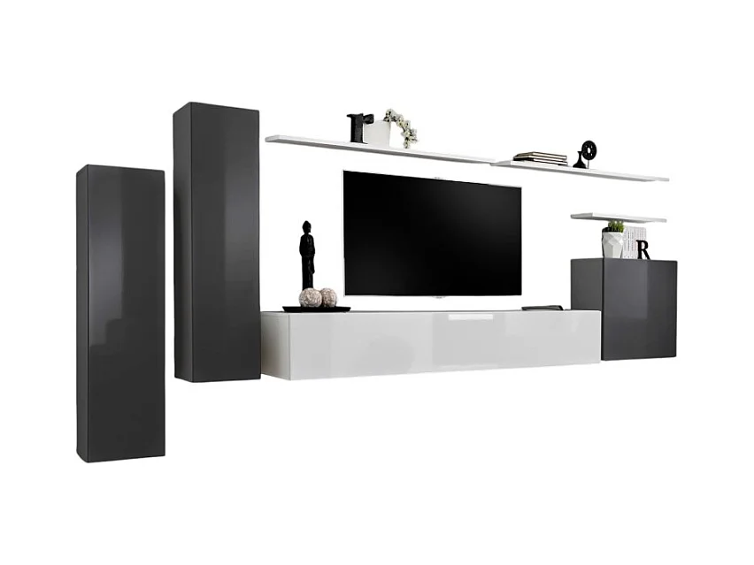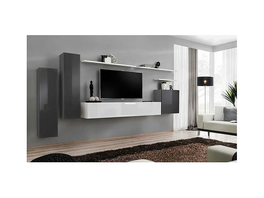 Ensemble de meubles de salon collection SWITCH I design, coloris gris et blanc brillant.